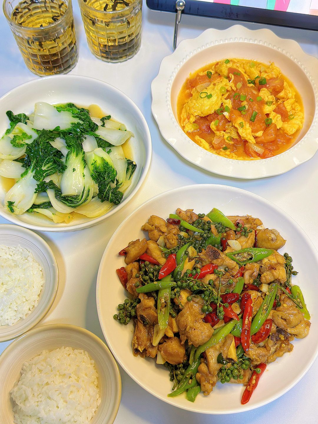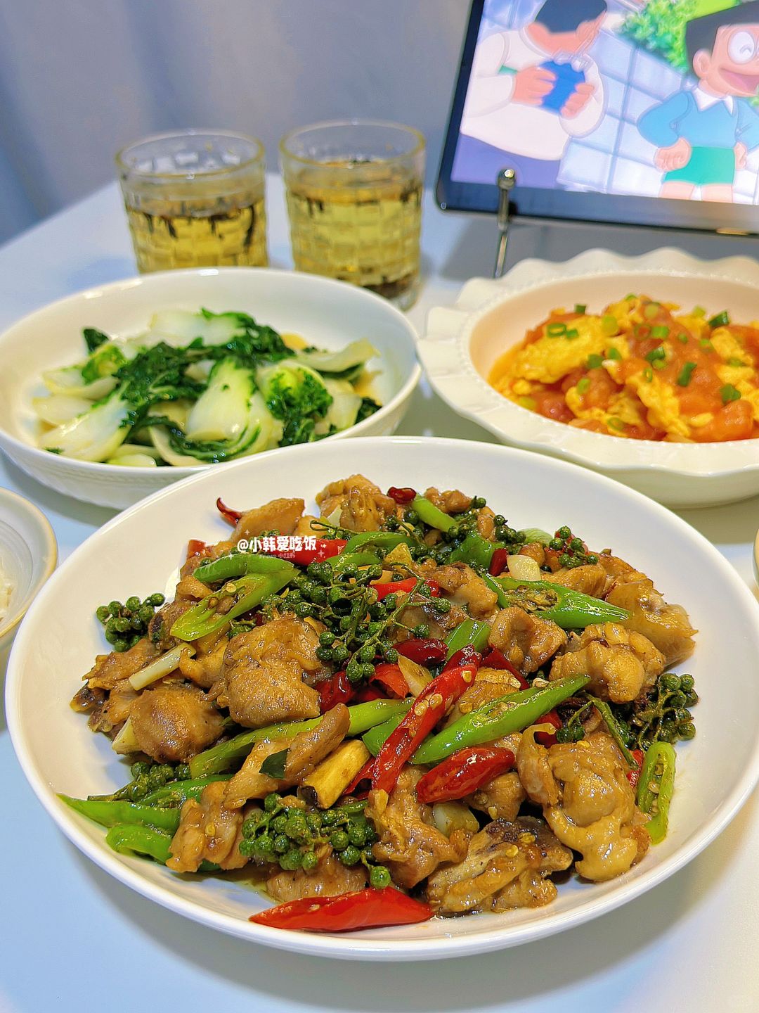 🎊青花椒炒鸡腿满满的青花椒的香气,太香啦!是我爱的味道,奶白菜奶香奶香的,脆脆甜甜的超好吃~ 🌈今日菜单: 1️⃣青花椒炒鸡 2️⃣西红柿炒鸡饭 3️⃣清炒奶白菜