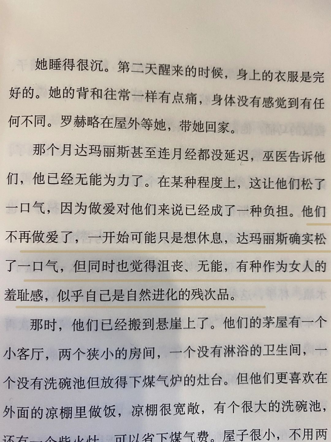 他们不再做 爱了,一开始可能只是想休息,达玛丽斯确实松了一口气,但同时也觉得沮丧、无能,有种作为女人的羞耻感,似乎自己是自然进化的残次品