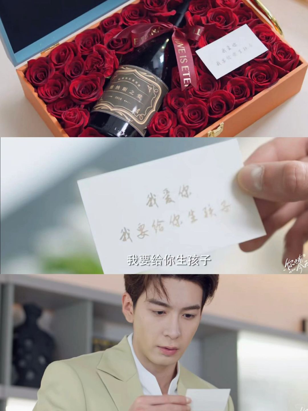 在钱恒的生日聚会上,成瑶提前送了生日礼物。钱恒打开礼物,是玫瑰花和酒、还有一张表白纸条✨“我爱你,我要给你生孩子。” [斜眼R]钱恒一整个心动,以为成瑶喜欢他。但其实,这是成瑶误送的。