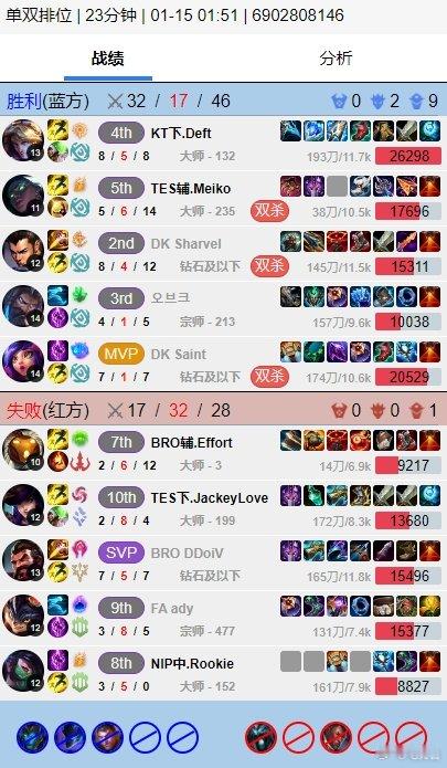 根据韩服排位数据显示,TES辅助Meiko与KT下路Deft连续撞车了六局,其中三局对手三局对手,Meiko赢下了四局。