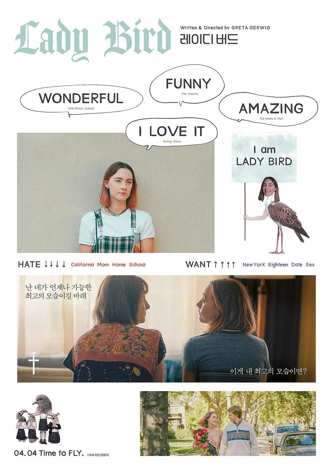故事也很简单。西尔莎·罗南饰演的伯德小姐很有个性,和同样有个性的母亲经常剑拔弩张,而她的父亲却很慈祥,对伯德很包容。