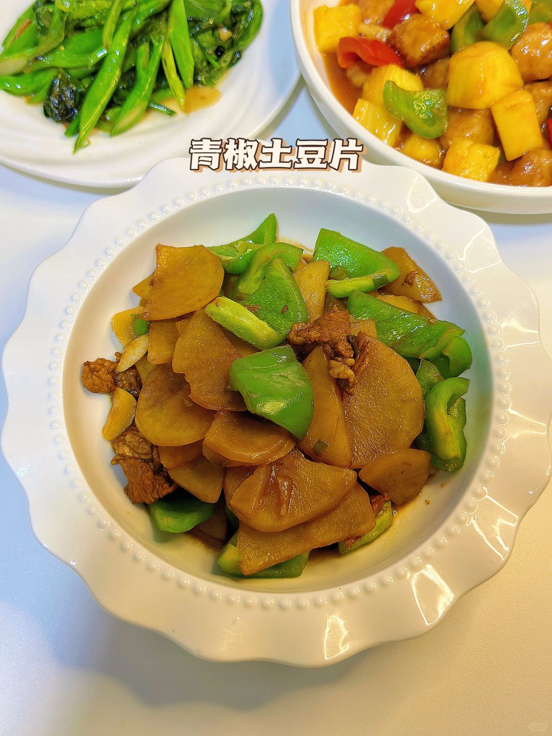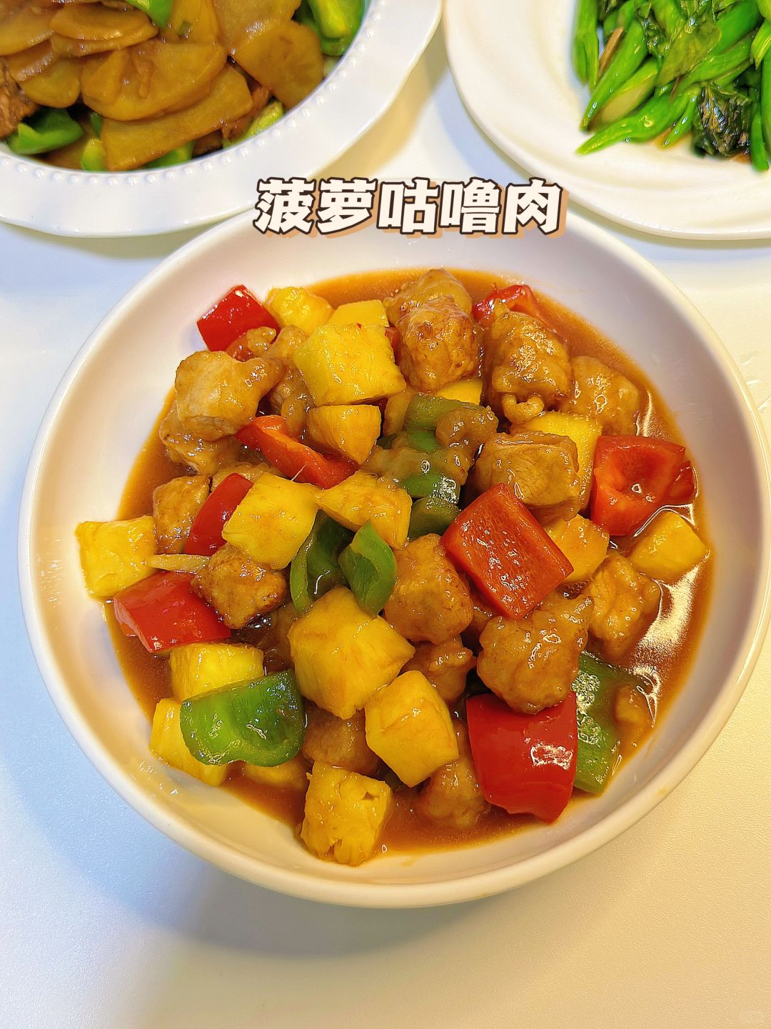 🎊甜滋滋的菠萝咕噜肉是女孩子的最爱啦,快做起来!青椒土豆片噂嘟下饭,土豆就是东北孩子的本命啦~ 🌈今日菜单: 1️⃣菠萝咕噜肉 2️⃣青椒土豆片 3️⃣素炒芥蓝