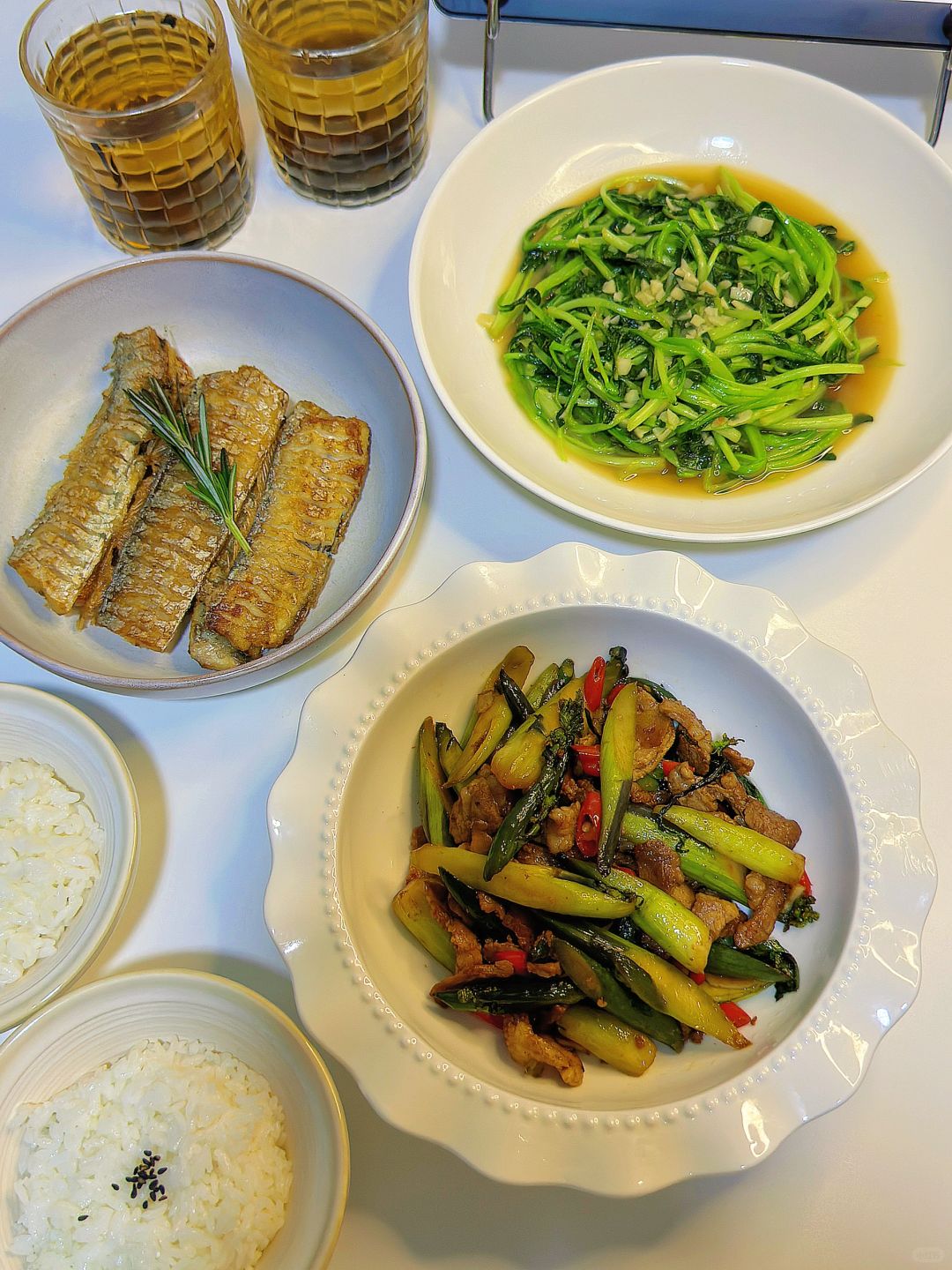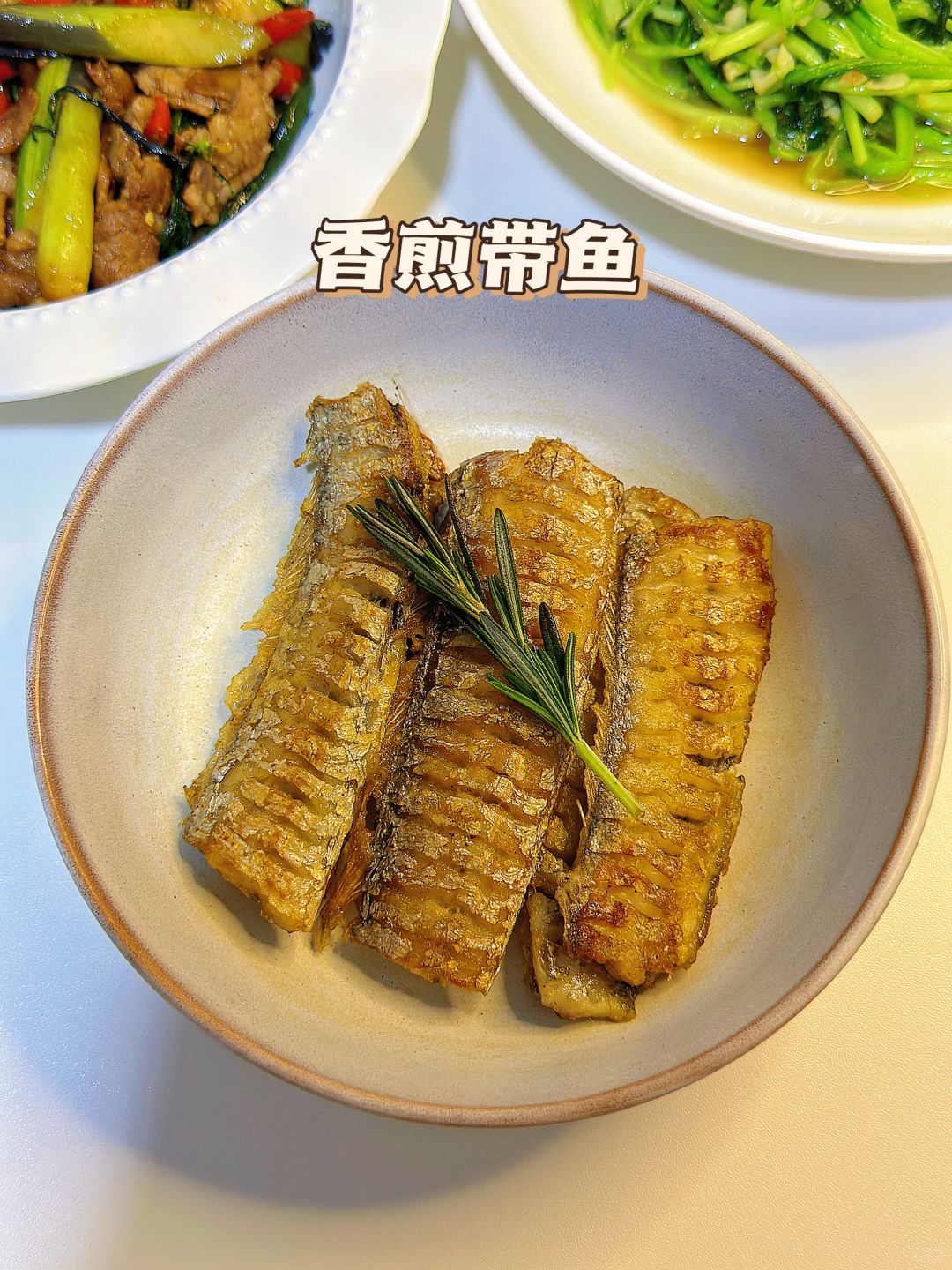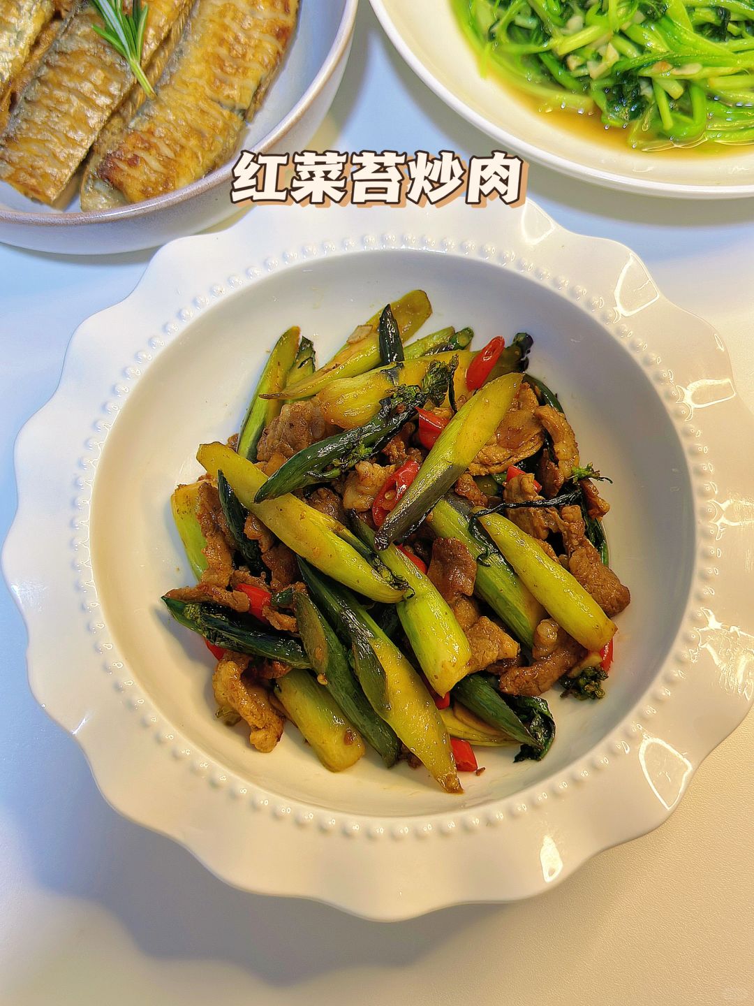 🎊红菜苔太好吃啦!微苦中带甜,越吃越好吃~带鱼煎完酥酥的,空口就能吃~ 🌈今日菜单: 1️⃣红菜苔炒肉 2️⃣香煎带鱼 3️⃣蒜蓉鸡毛菜