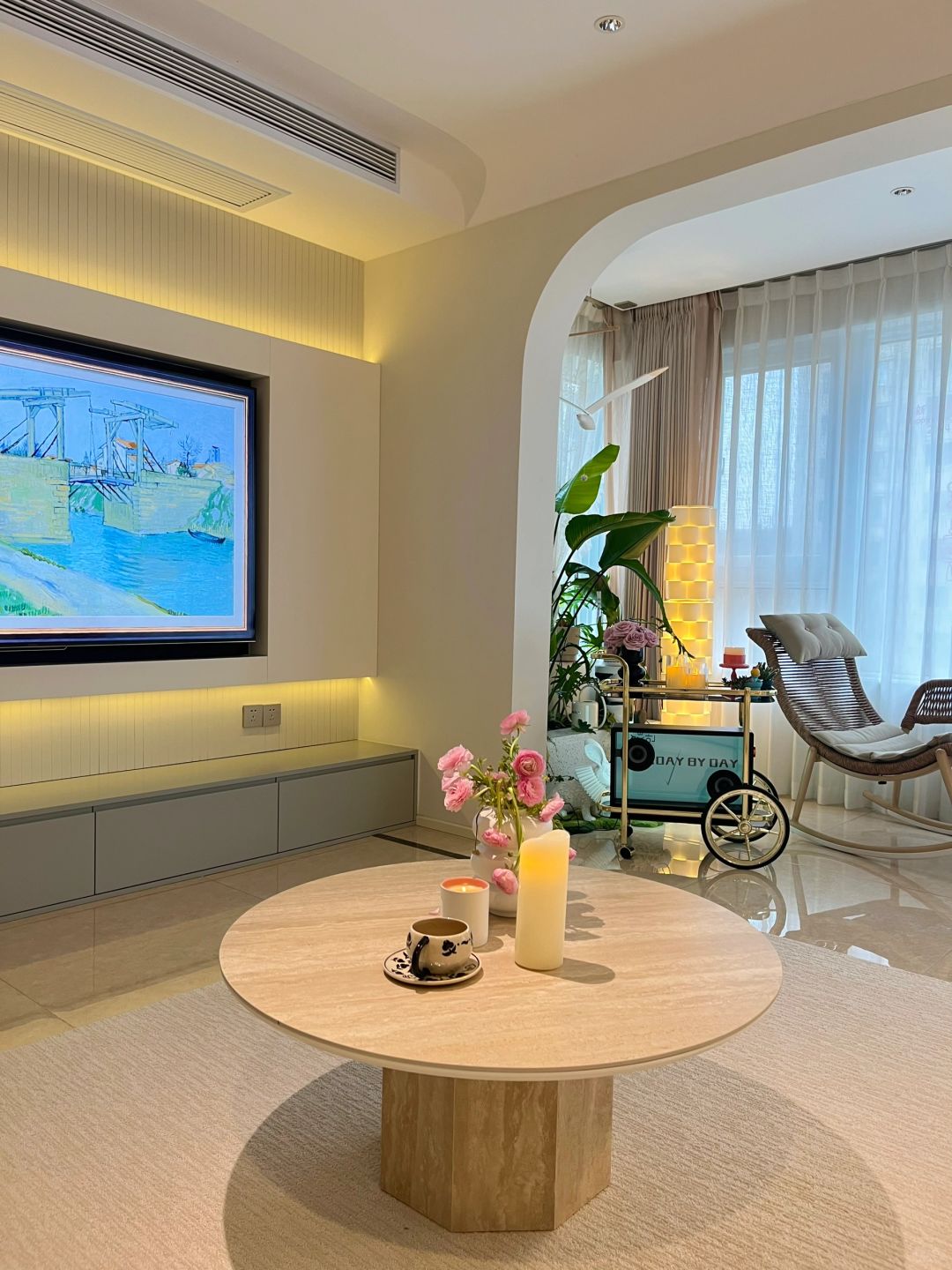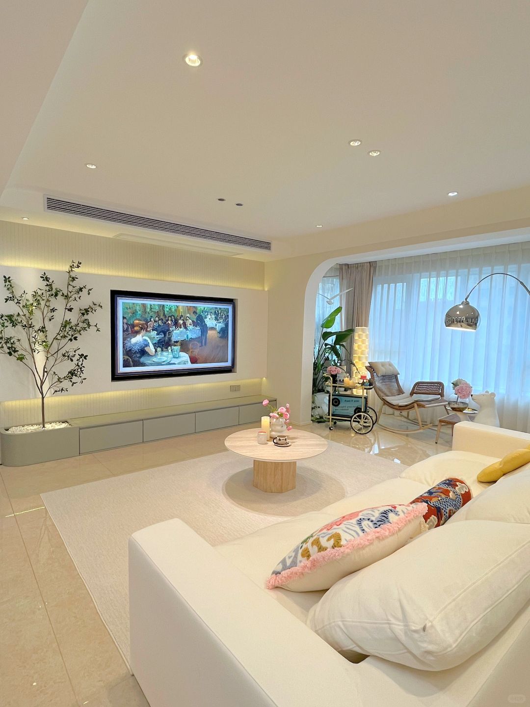普通人的第二套房 套内120平/精装交付/四室改三室 邻居来看都说我家像是砸了重装 只花了15w,却装出50w的效果! 我爆改精装房的清单分享给大家✅: ▪ 客厅阳台打通,空间更加开阔 ▪ 全屋乳胶漆,整体有一致感 ▪ 厨房、卫生间硬装没动,台面贴膜改色 ▪ 更换卧室门,耐看基础款,入户门DIY刷漆改色 ▪ 软装全部官网采购,方便快捷 最初为了省预算,保留了开发商自带的亮面地砖,但我越来越觉得不耐看,换个地板耗时又费钱,索性直接铺一张大地毯,立马就像换了一个家! 我家这张是【赛波斯·青山美宿】的白月光防水地毯,泛着珍珠光泽的奶白色,近看毯面还有浮雕肌理,就像一席月光倾洒在地毯上,精细又温柔! 地毯除了颜值外,更让我惊喜的是它自带有防水功能,地毯是科技防水材质织成的,平时就算不小心打洒的咖啡、饮料,都不用担心啦,毯面会像荷叶一样聚水成珠,水渍不会立马渗透到毯面里,用纸巾轻轻一擦就干净了。 ⬇其他花费清单我总结在这里了 ✅ 硬装:4.5W(砸墙+阳台地砖+客厅吊顶+门+乳胶漆) ✅ 柜子+岛台:4W(餐边柜+衣柜+储物柜+岛台) ✅家电:3W(风管机X2+冰箱洗衣机等基础家电) ✅全屋家具:2.5W (沙发+床+餐桌椅等) ✅软装:1W (地毯、窗帘、装饰品等) 有其他的问题也欢迎大家询问呀~希望今天的分享能给你提供一点灵感!