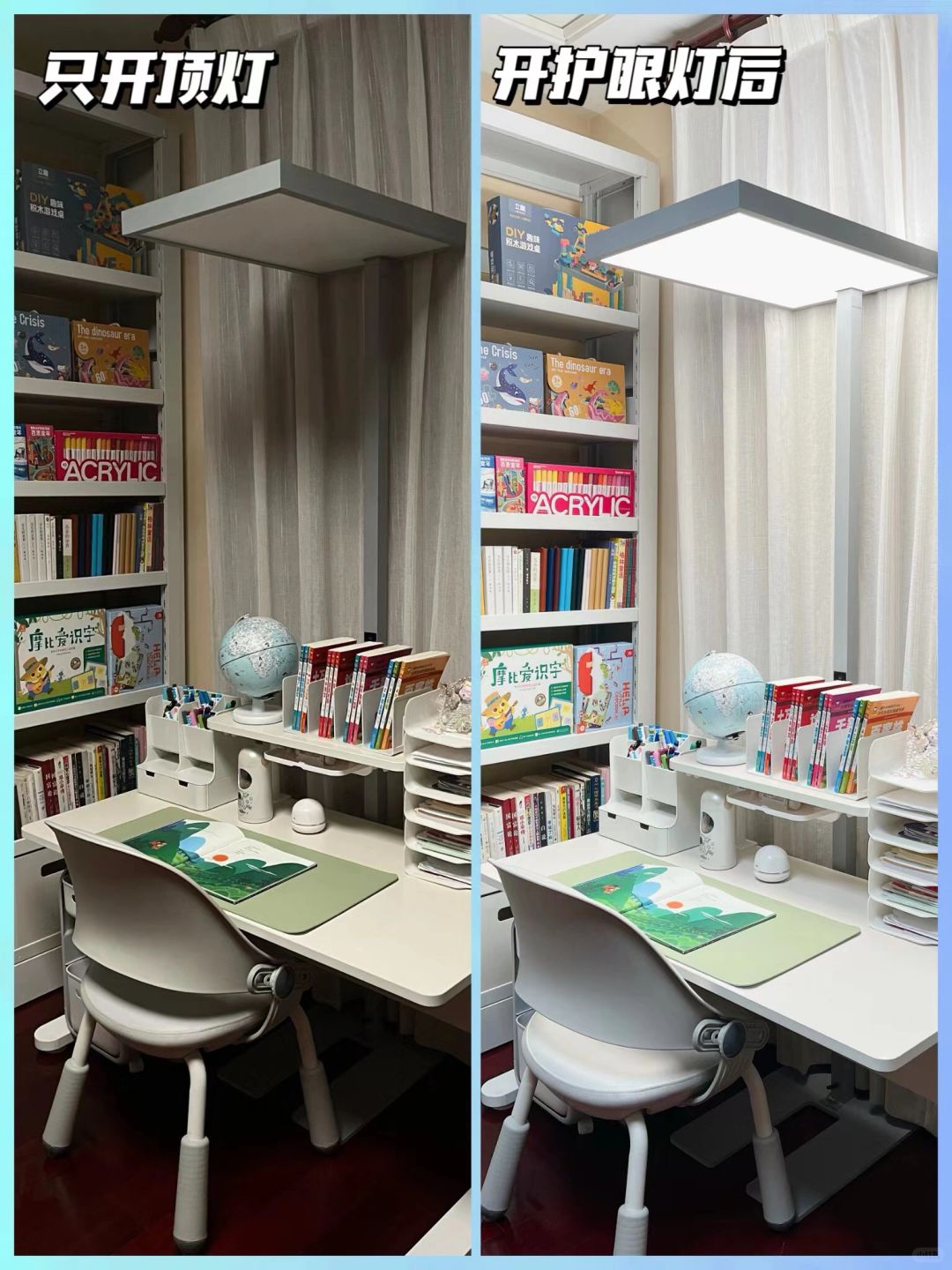 大路灯和吸顶灯搭配会大大提升空间光线的均匀度,减少空间的阴暗差,更有利于预防近视