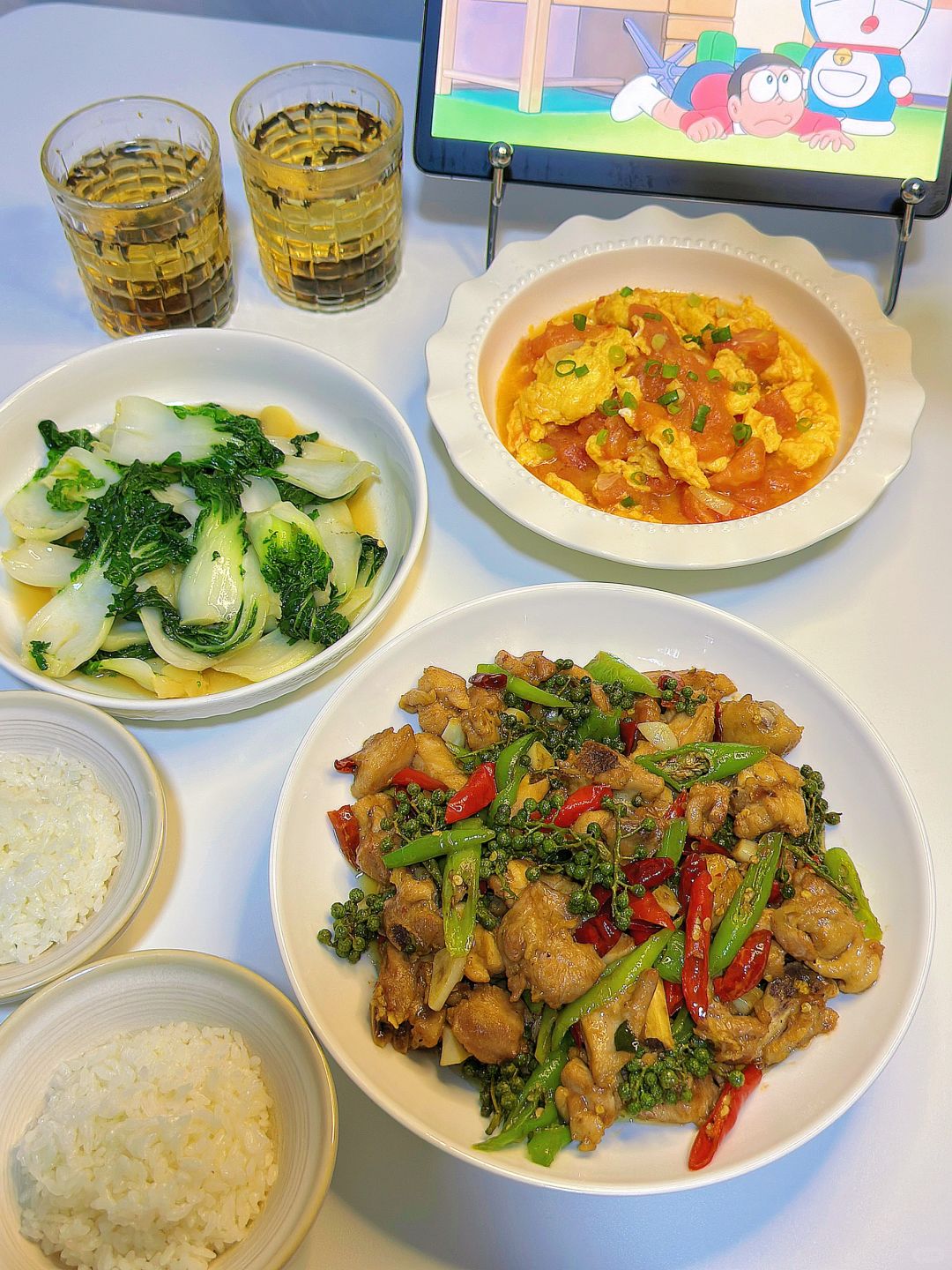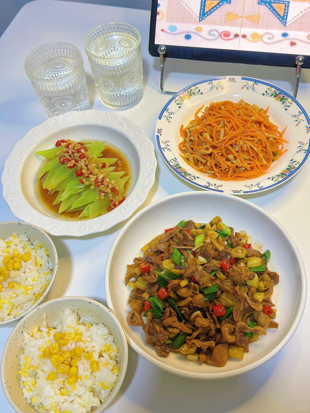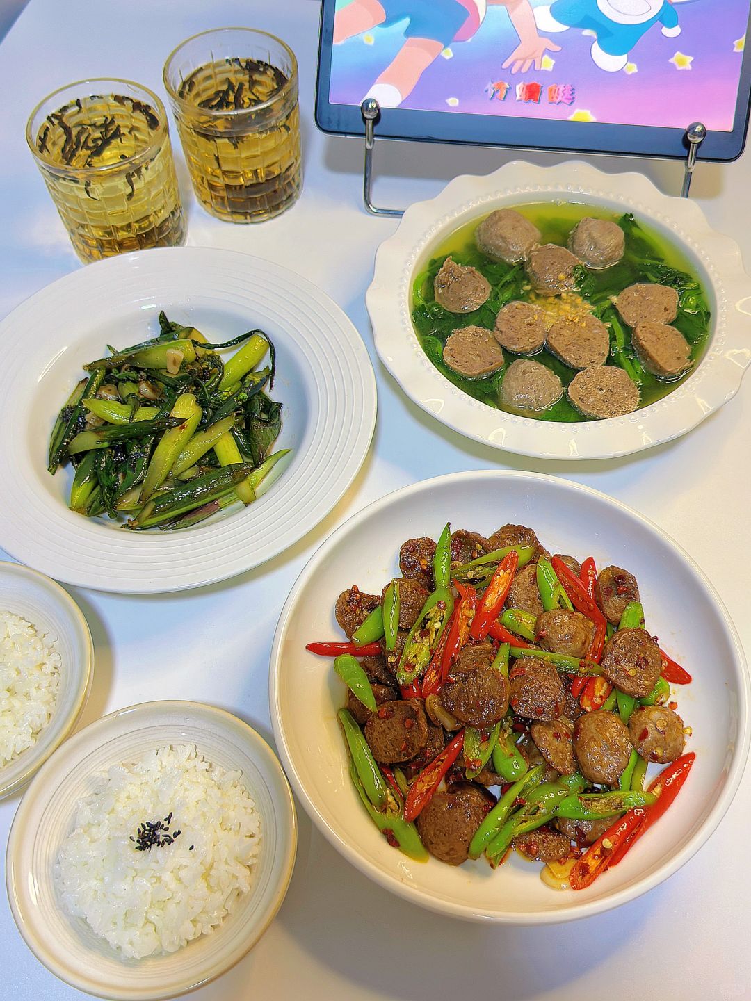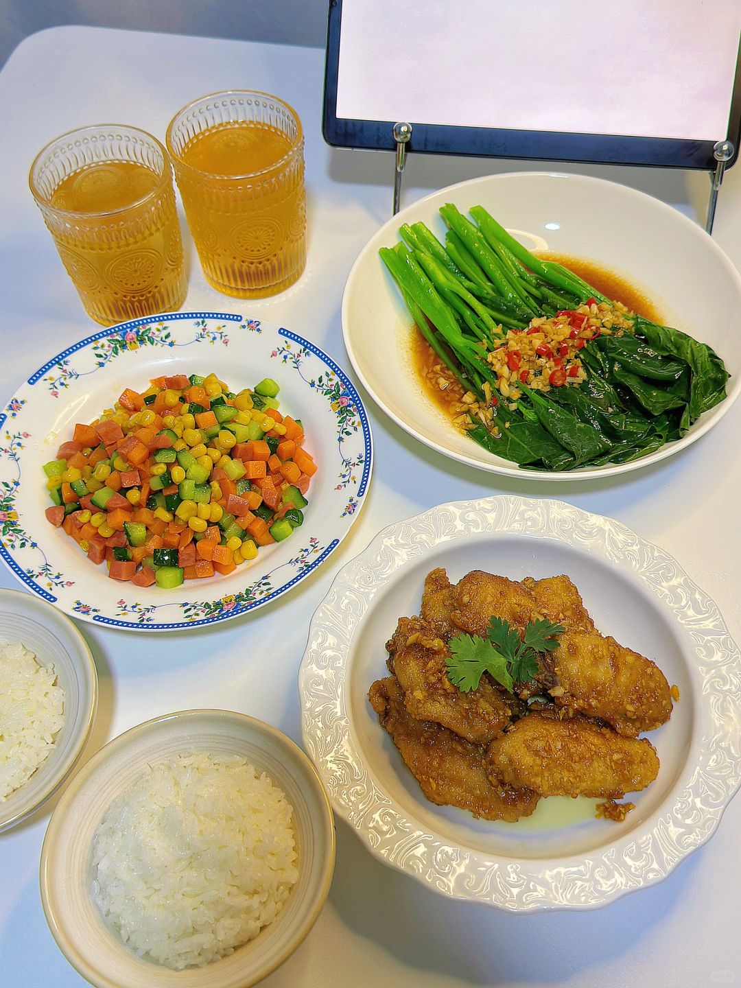 给大家整理了一周晚饭合集✨ 每道菜都有详细的教程🥘 希望能给大家带来做饭的灵感✨ 大家可以翻之前的笔记🎉 好好吃饭哟~💕💕 1️⃣鱼香肉丝➕酸辣娃娃菜➕豆豉茼蒿 2️⃣酸辣鸡胗➕胡萝卜丝炒肉➕凉拌青笋 3️⃣蒜香黄油鸡翅➕什锦玉米粒➕白灼芥蓝 4️⃣蒜苔鱿鱼须➕雪菜烧豆腐➕清炒白菜 5️⃣青花椒炒鸡➕西红柿炒鸡蛋➕清炒奶白菜 6️⃣菠萝咕噜肉➕青椒土豆片➕素炒芥蓝 7️⃣爆炒牛筋丸➕豌豆尖牛肉丸汤➕素炒红菜苔