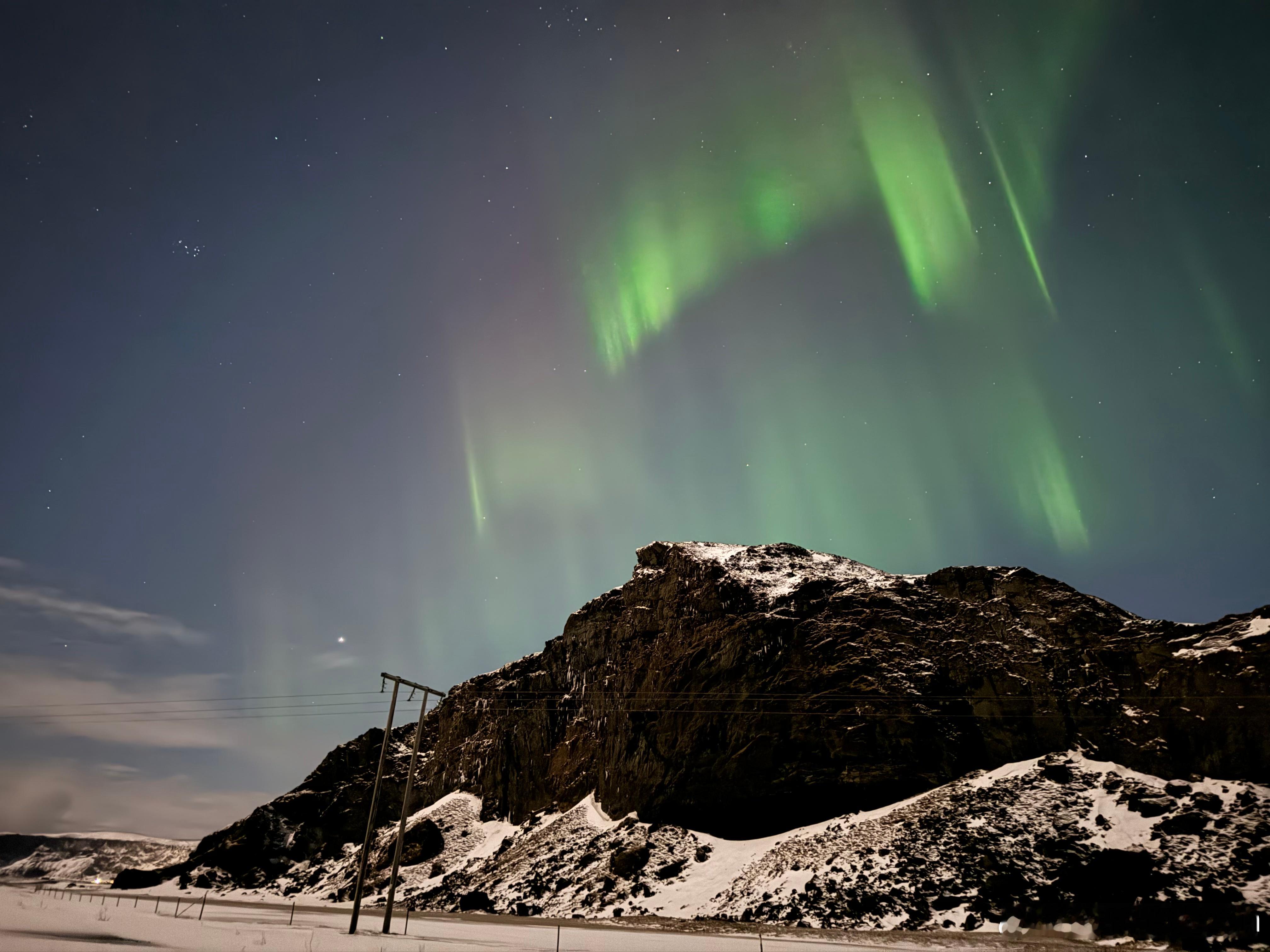 分享一下昨晚拍到的极光,不算很强烈,比较微弱,希望接下来冰岛的天气能晴朗一点,不