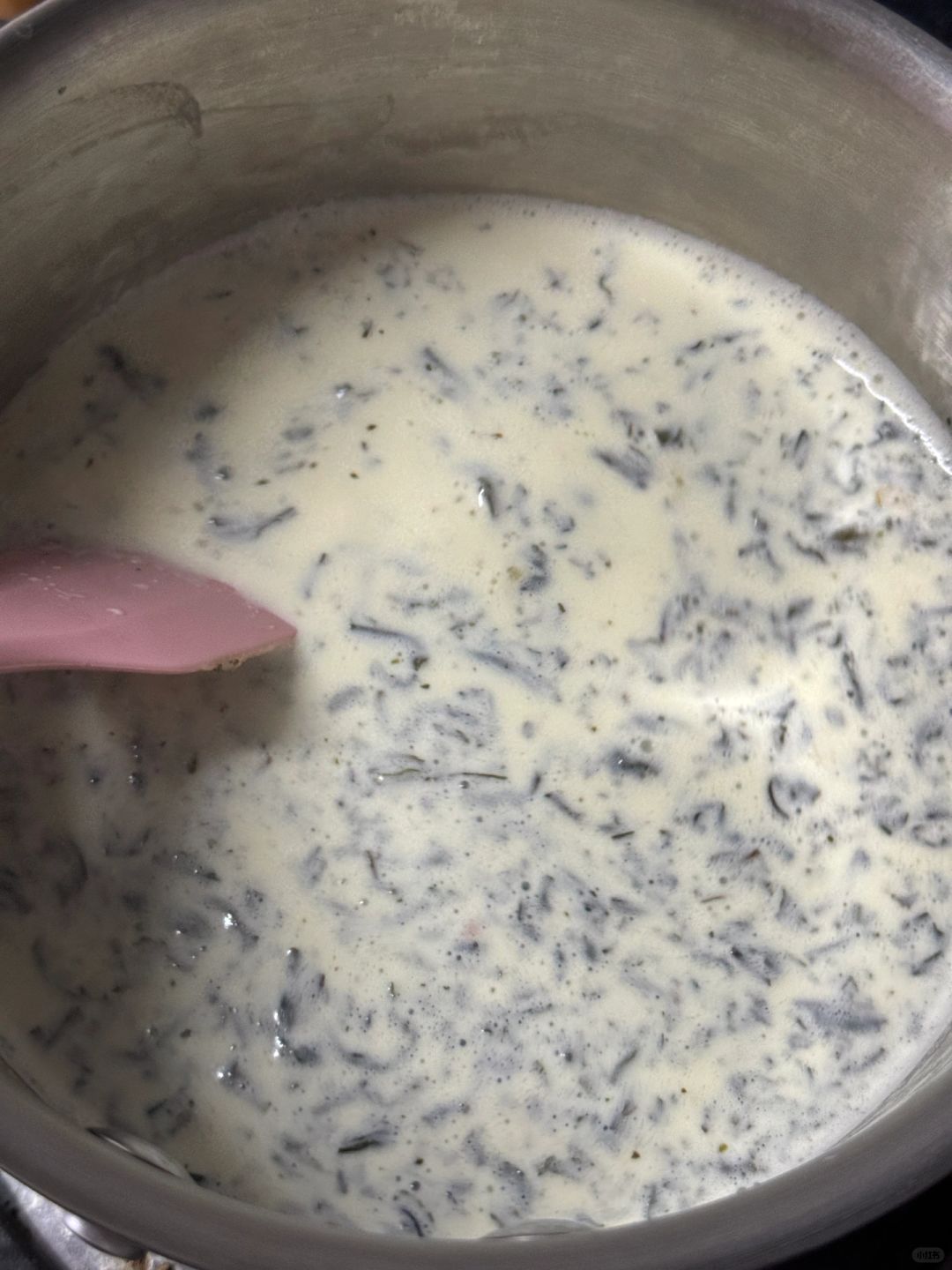淡奶油+牛奶+茉莉茶叶+糖加入锅里