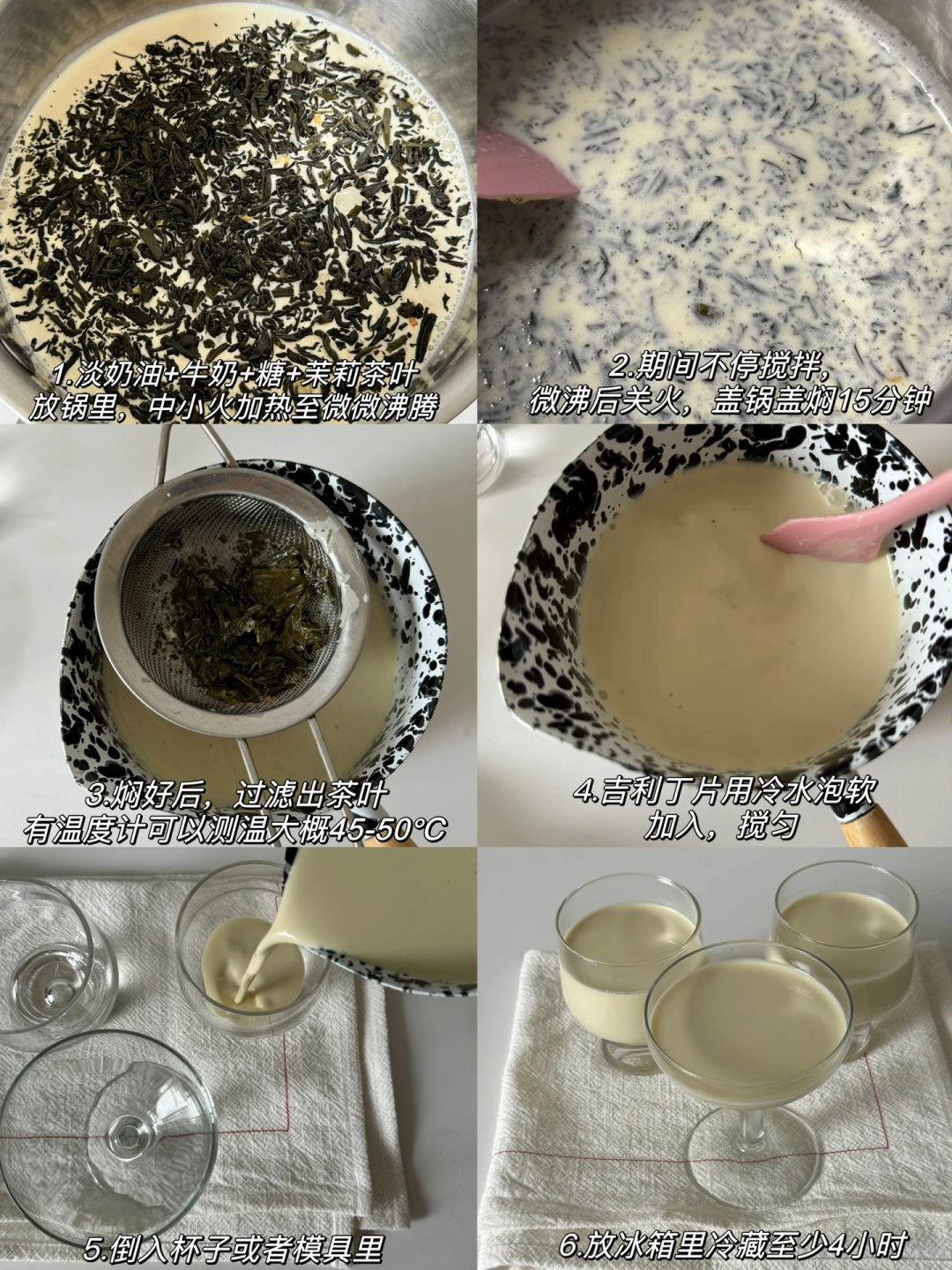 吉利丁片用冷水泡软后,加入茉莉奶茶里搅匀