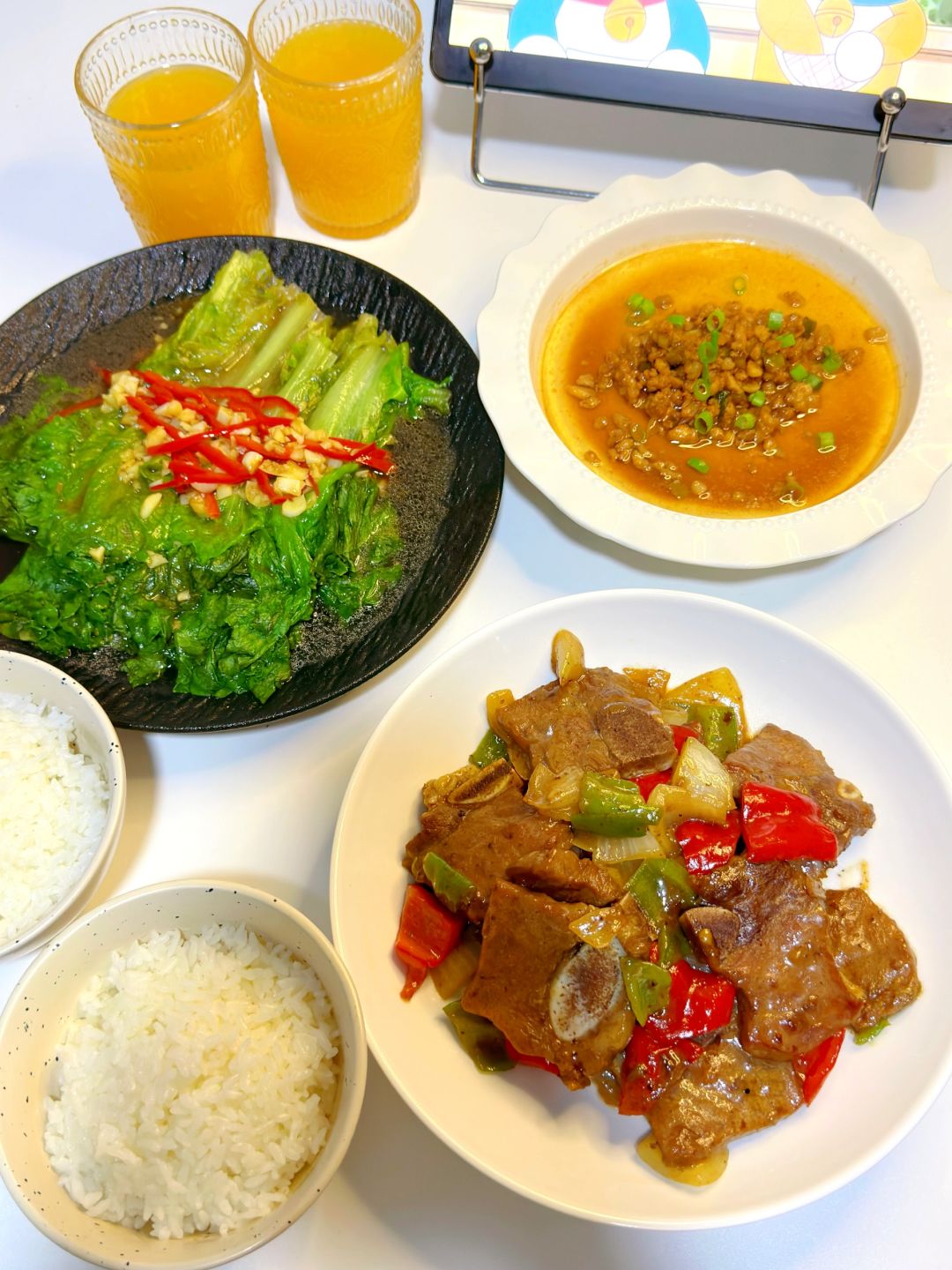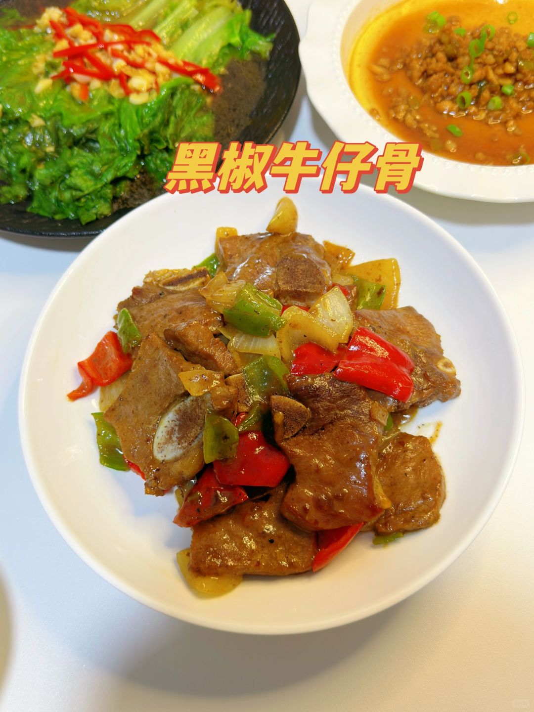 🎊快过年啦!把冰箱打扫一下,正好有两袋牛仔骨没吃,就做个黑椒牛仔骨吧,真的好香好嫩,大家还有什么牛仔骨做法嘛~欢迎评论区踊跃发言哦~肉沫蒸蛋嫩嫩的,拌米饭超级香~ 🌈今日菜单: 1️⃣黑椒牛仔骨 2️⃣肉末蒸蛋 3️⃣白灼生菜