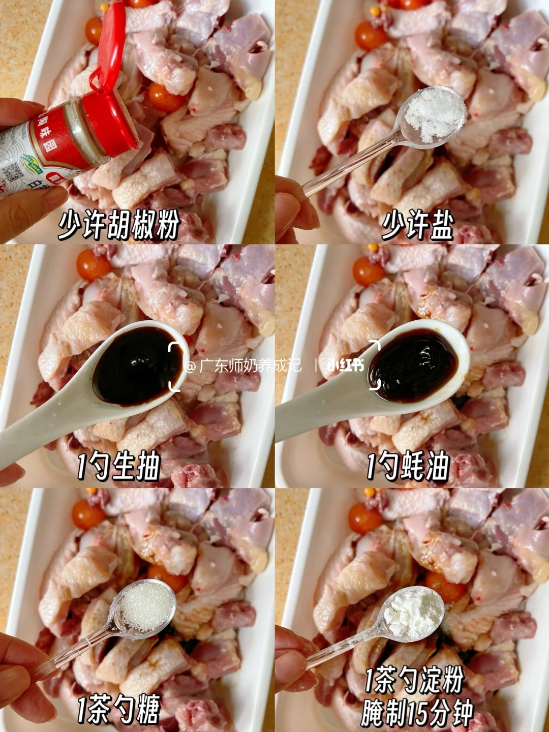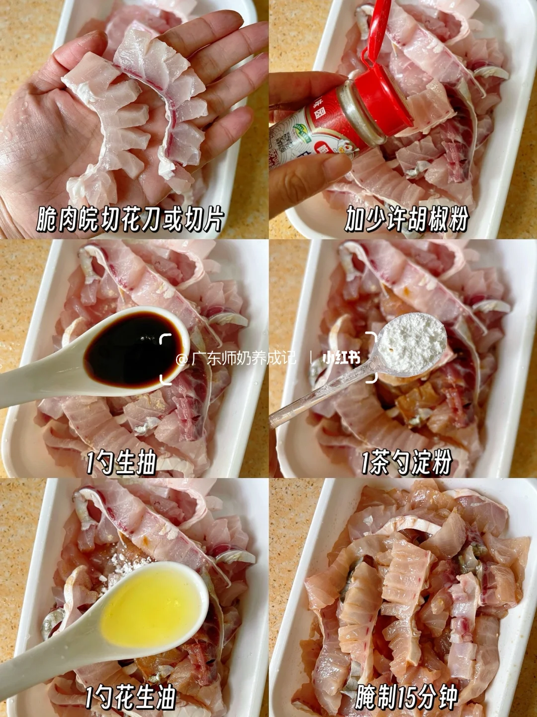 1️⃣脆肉鲩和鸡肉参考图片腌制备用
