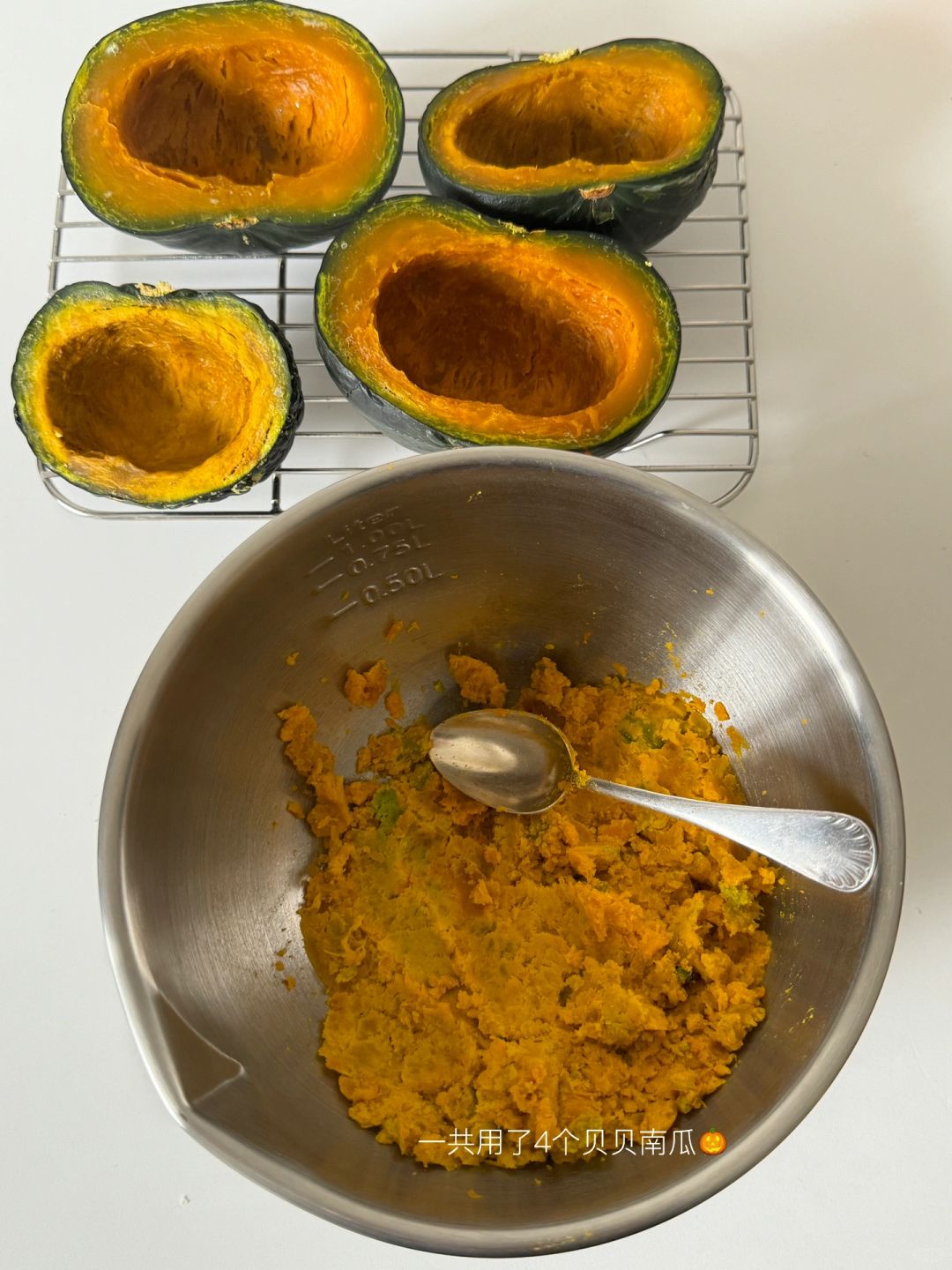 我更喜欢老南瓜的味道,南瓜香味更重也更甜,而贝贝南瓜是有板栗香,但老南瓜真的好难熬干[哭惹R],水分很多。我打算之后再试试一半老南瓜+一半贝贝南瓜,今儿先把基础配方分享出来。