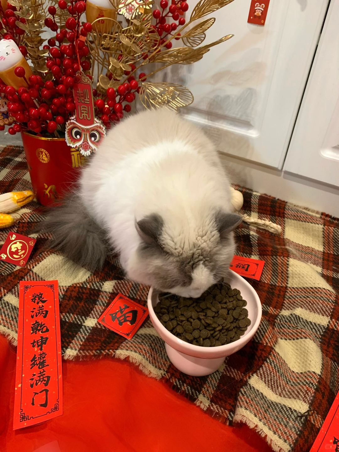 快过年了一起来拍照📷 两只小猫当然要整整齐齐啦 新年全家福提前给小猫安排上啦🏮 小粑老是抢小鸡毛镜头 妹妹拍照这么乖 吃起饭来也是大口大口的 一整个乖宝宝 新年不论是拍照还是吃饭都要让着点妹妹哦ฅ՞••՞ฅ🧧