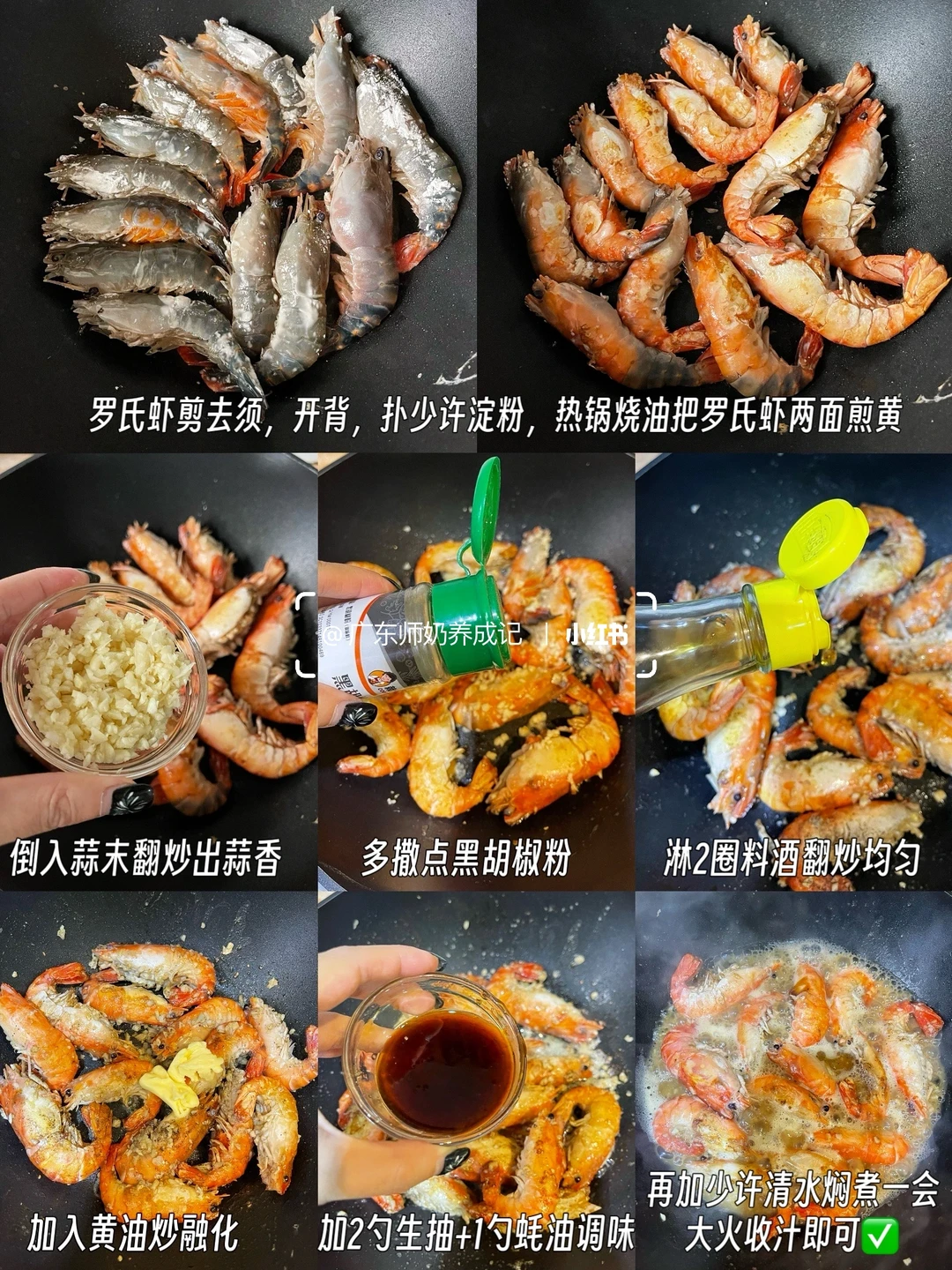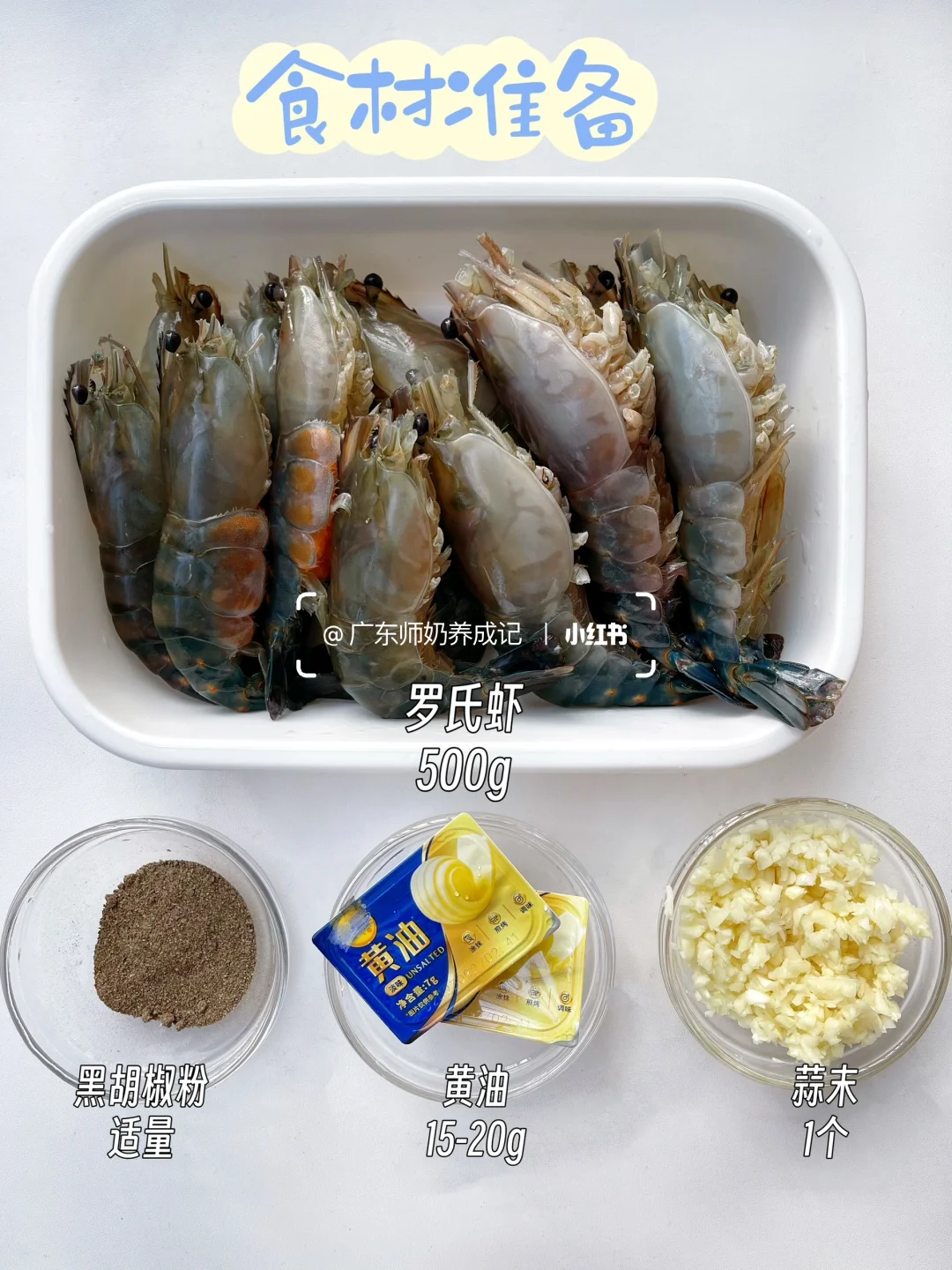 📝【食材】:罗氏虾,蒜,黄油,黑胡椒