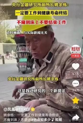 专家又研究出新提法:一定要工作到健康生命终结,不瘫倒在床上不要结束工作… 要不说是专家,思想觉悟就是高,只不过我想问问姚专家,咱老祖宗有句老话叫己所不欲,勿施于人。您的父母家人,是不是也能这么干?! 这让我想起了一句话:站着说话看来确实不腰疼。毕竟不是每个人都如您这般,靠这一张嘴就把钱挣了… 咱就搞不明白了,都是专家,人家德国人研究重工,小日子研究轻工,美丽国研究军工,咱们的专家都在研究个啥呢…
