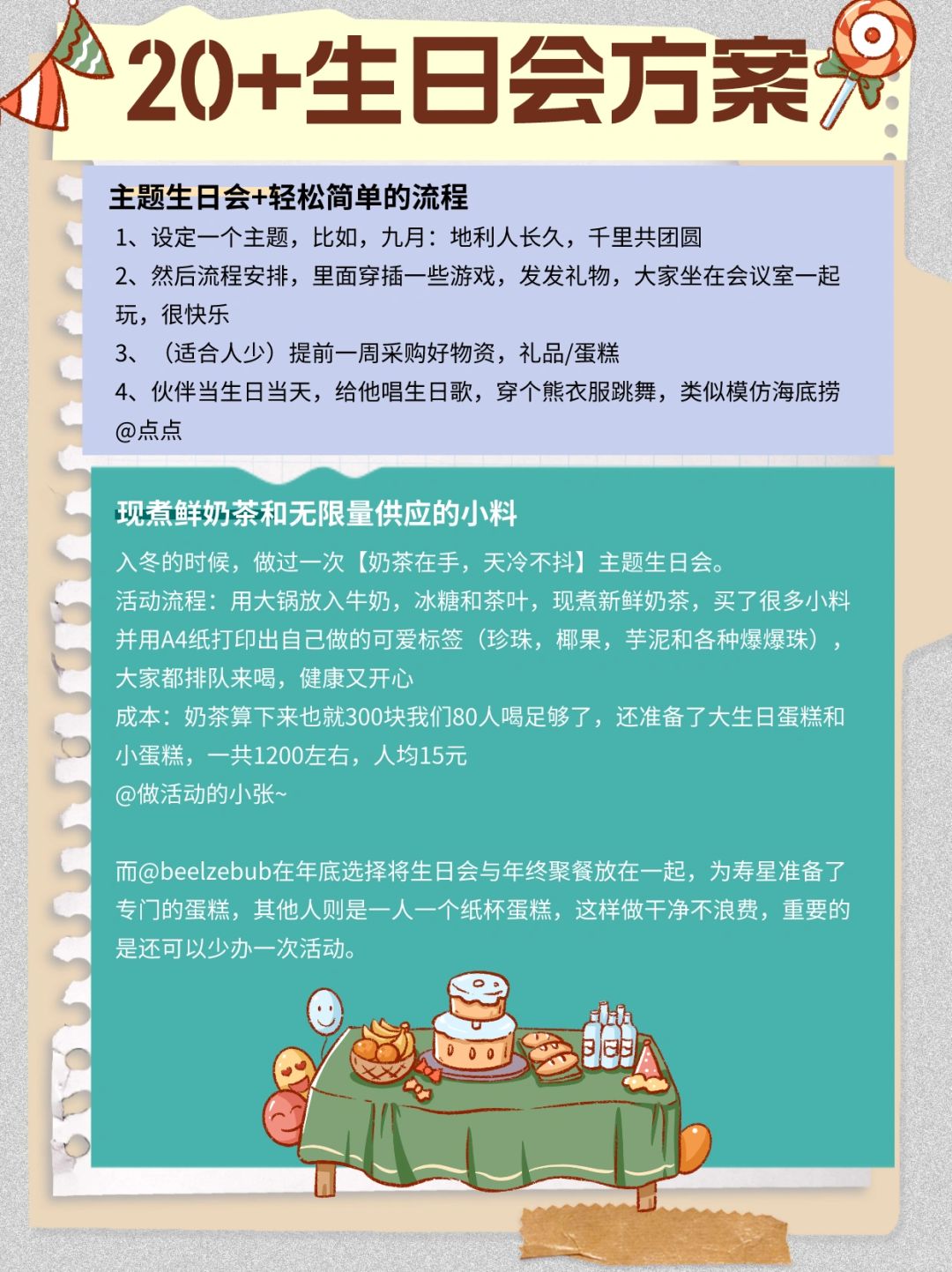 员工生日会策划来啦 从下午茶、贺卡,主题生日会,自己动手DIY主题场景等入手,可以带来让人眼前一亮的活动