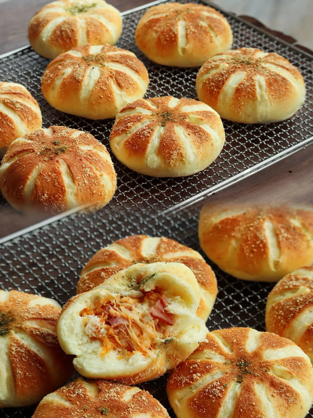 今天给大家分享一款巨巨巨好吃的肉松面包,拉丝芝士搭配肉松培根,香气四溢!