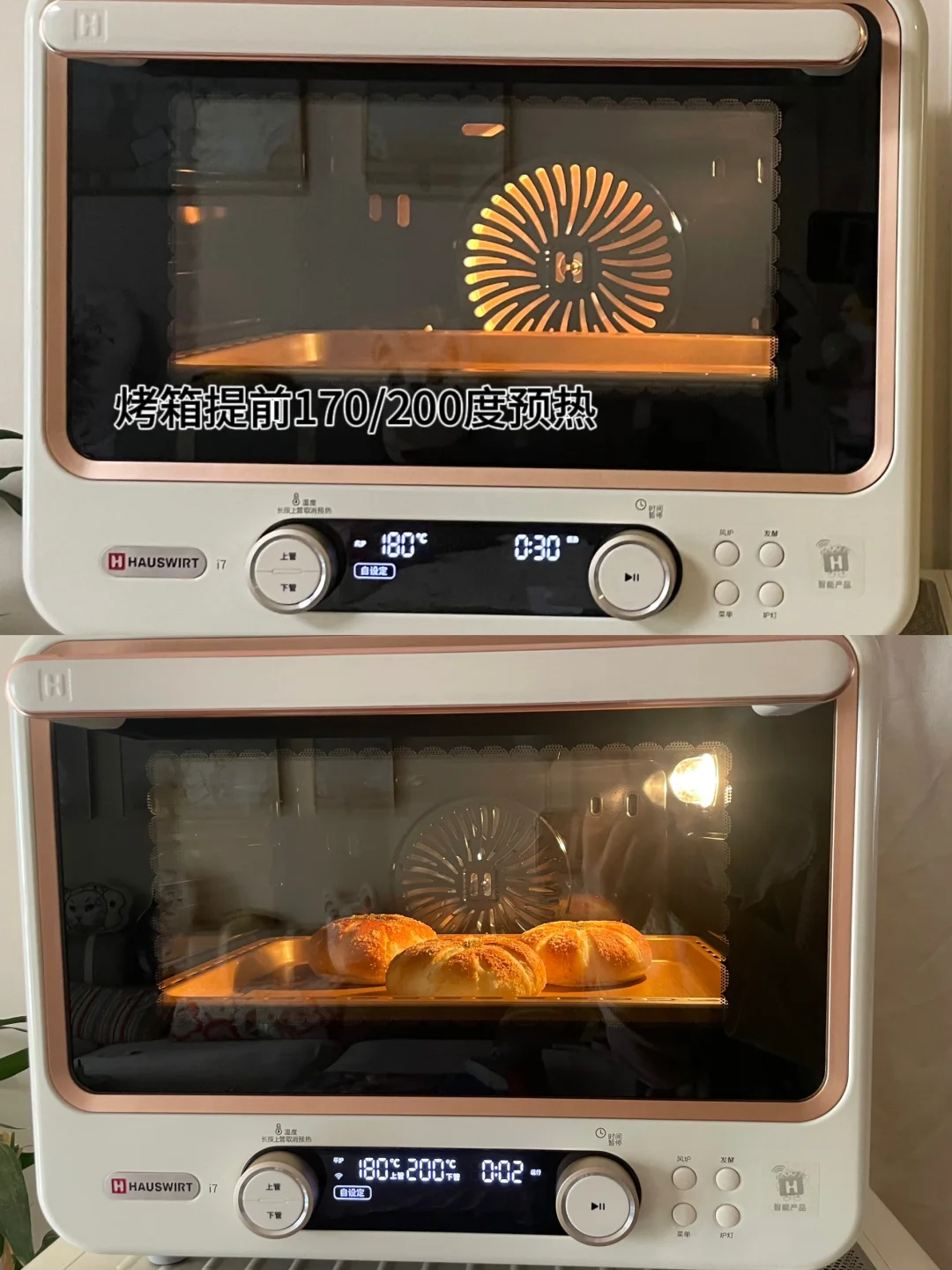 7⃣️送入上火170/下火200度预热好的烤箱,烘烤15分钟出炉