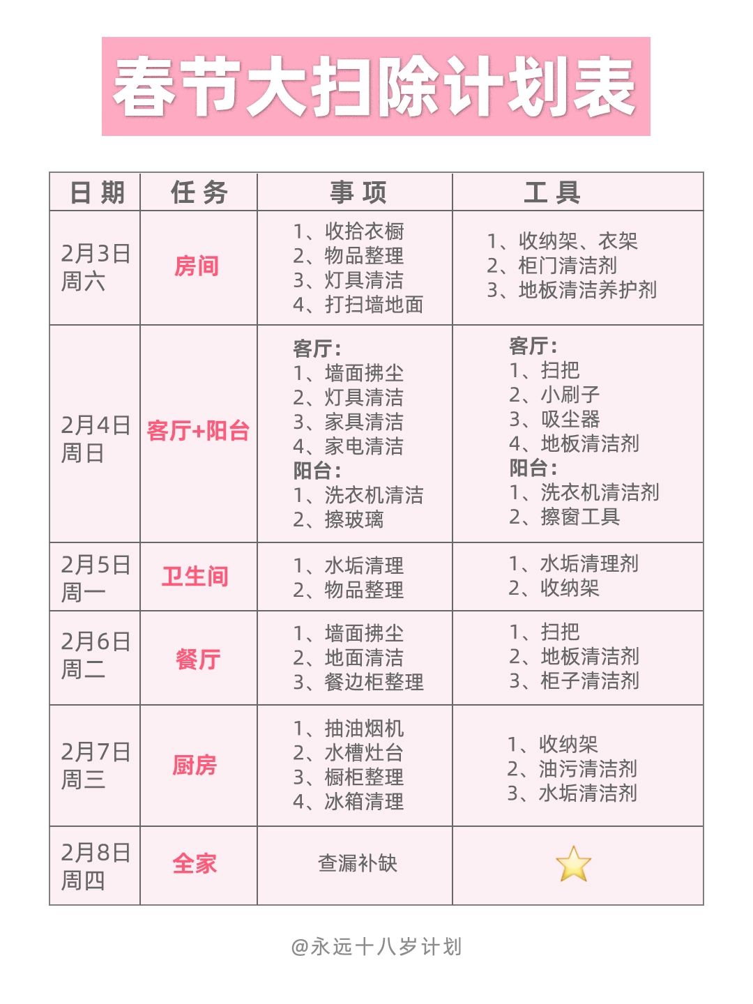 永远十八岁春节大扫除计划表