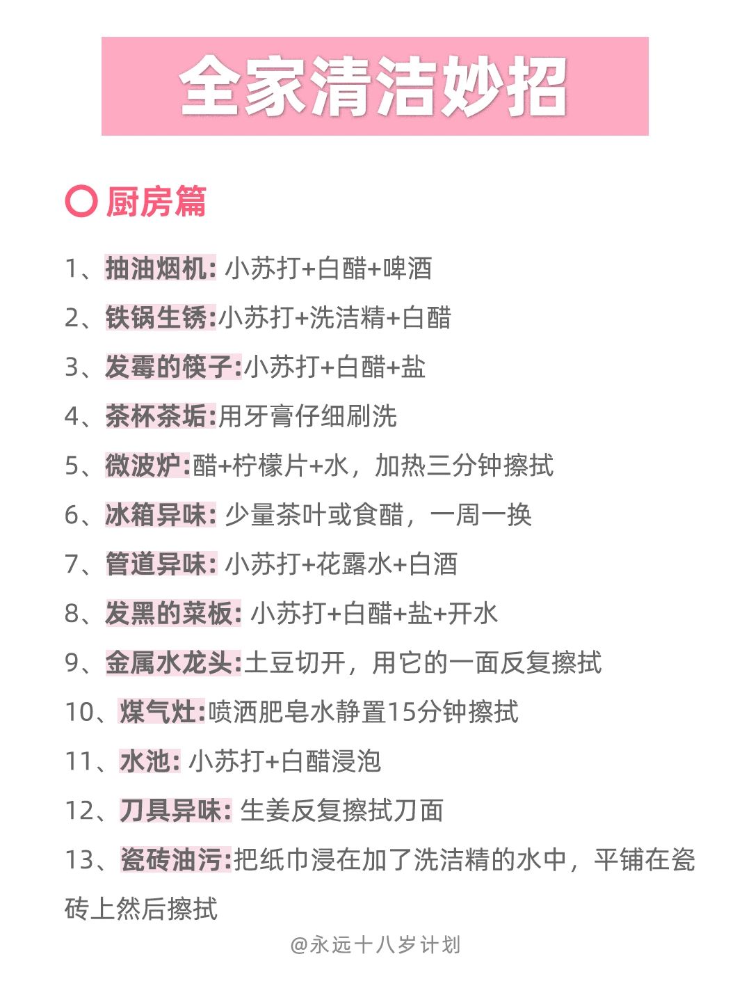 永远十八岁 春节大扫除计划表