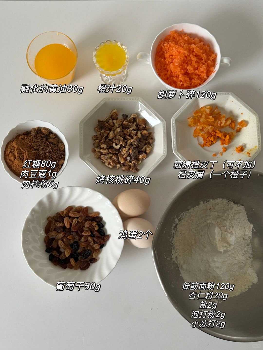 小苏打2g 肉桂粉5g 肉豆蔻粉1g 胡萝卜120g