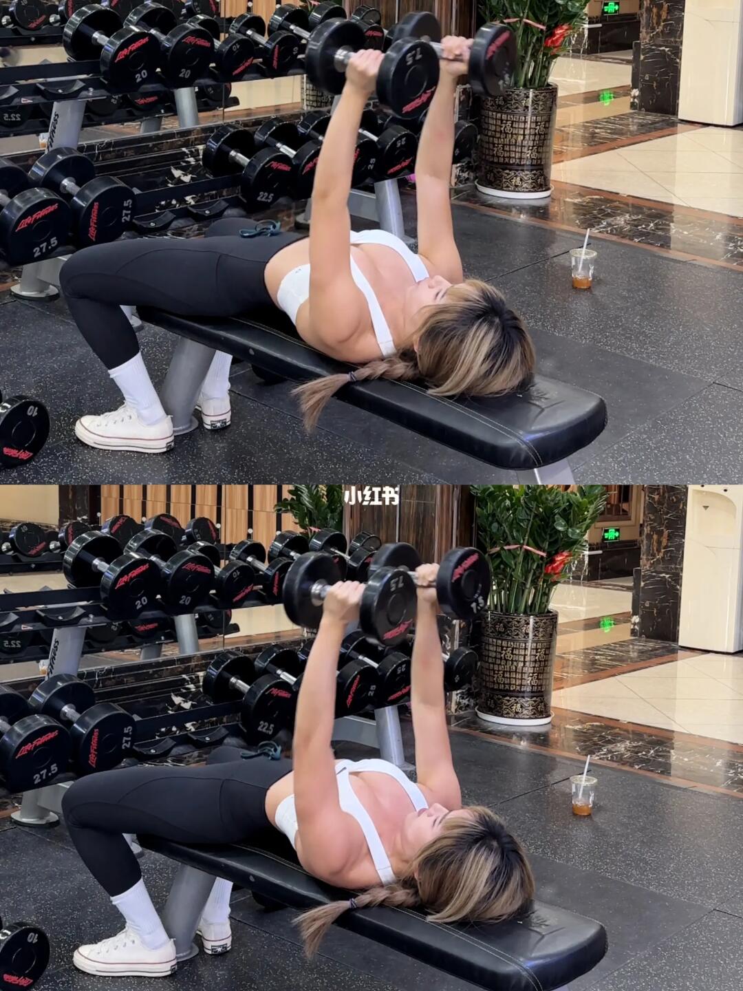 卧推可以40kg做组啦!大大的进步!有健身搭子辅助真的太棒了! p.s.:录视频对比才发现原来练胸真的会充血!!
