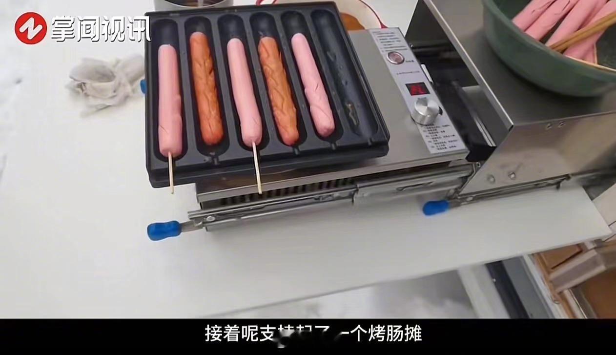 而这还没完,女生又把自己藏在冰箱里的烤肠拿出来,在车上支起了一个烤肠摊,免费分给没有食物的人吃!