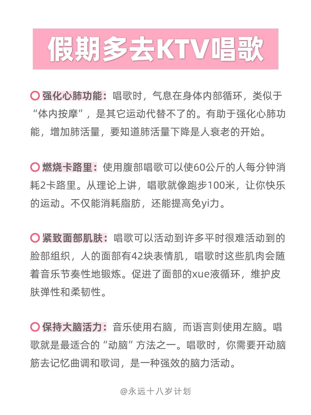 永远十八岁 假期多去ktv唱歌