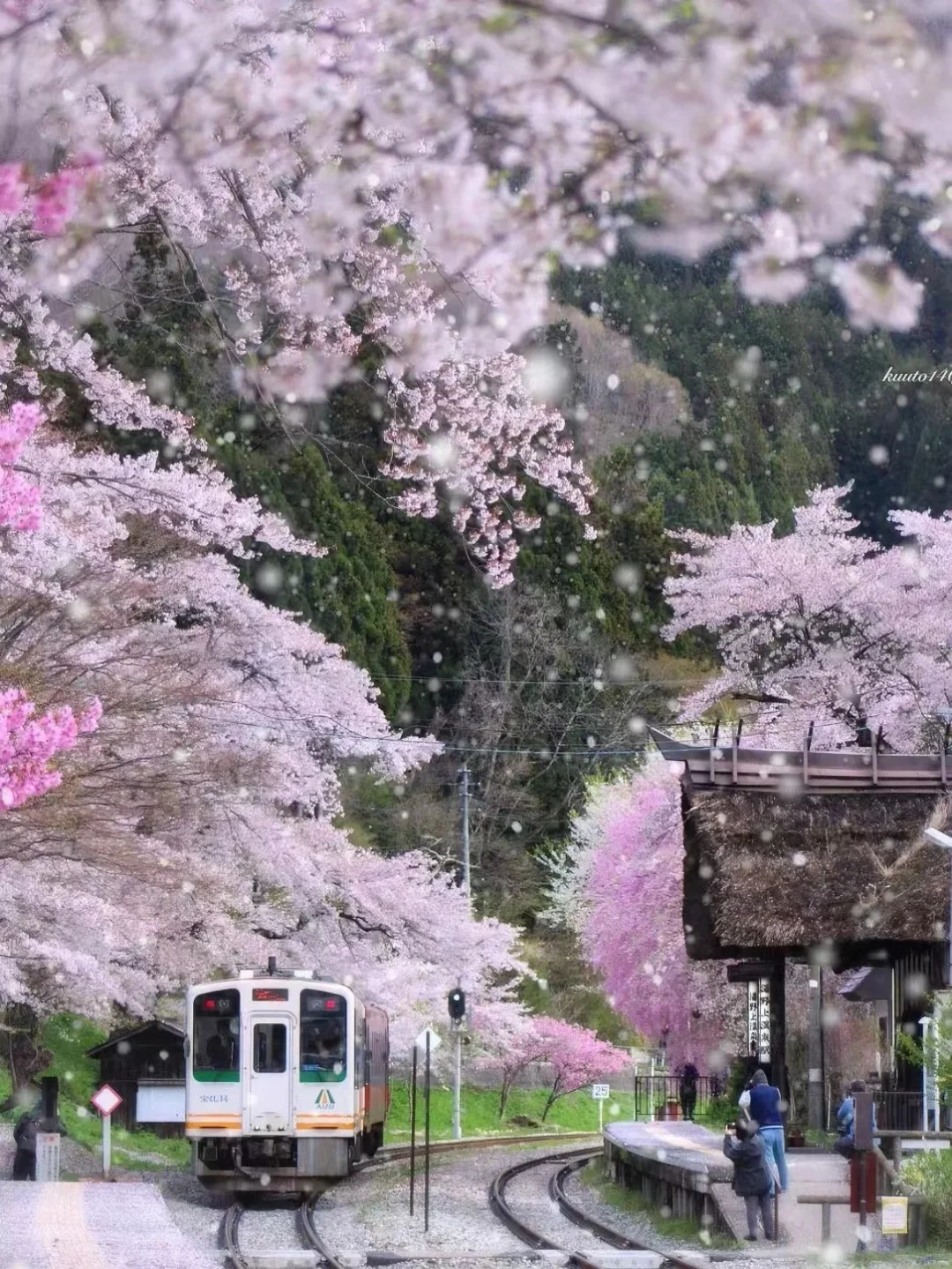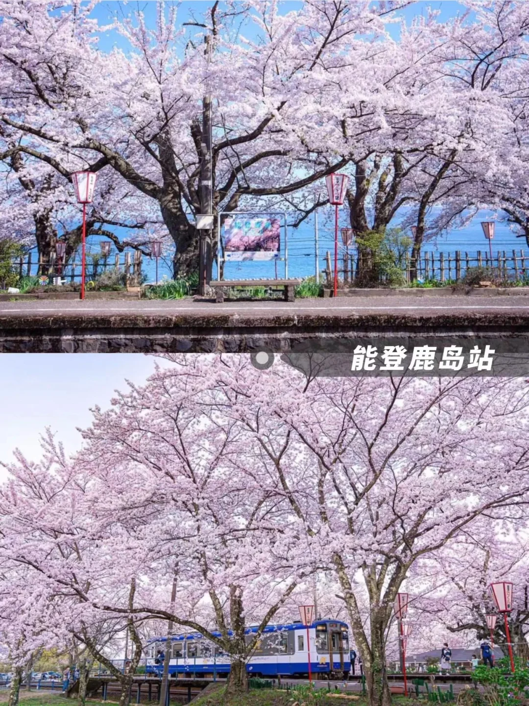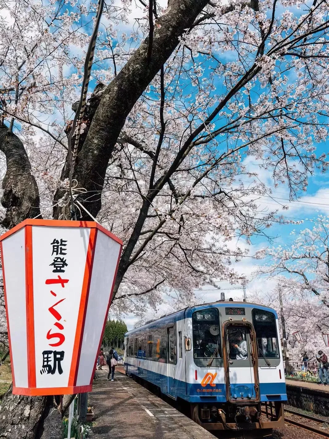 能登半岛上很有名的赏樱胜地,当列车缓缓行驶到樱花隧道,视线一下子就淹没在两旁的樱花树中,再倚靠着蓝色背景的大海……天呐樱花配海也太美了吧!