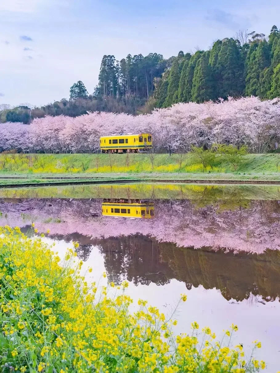以油菜花而闻名,但当油菜花与樱花季相遇,黄色和粉色碰撞出别样的温柔!推荐打卡点新田野駅站和东房本站附近