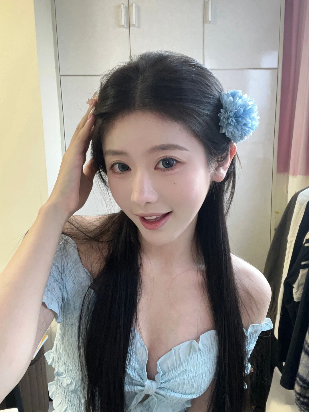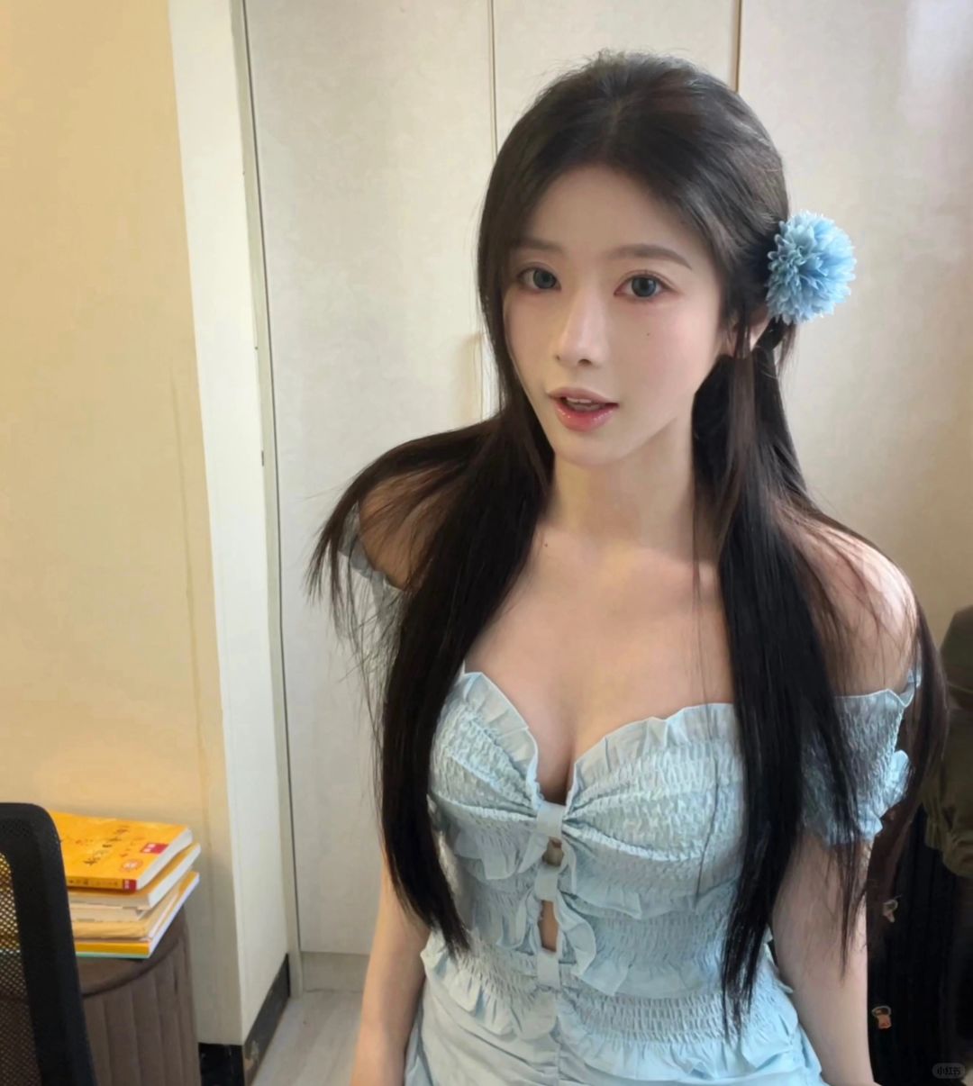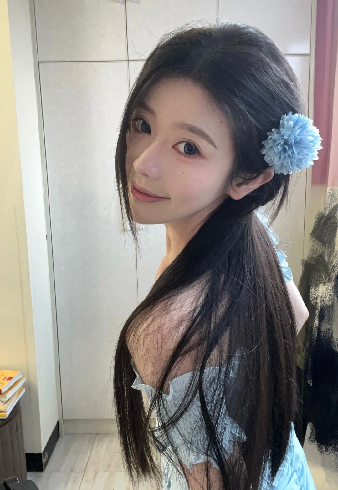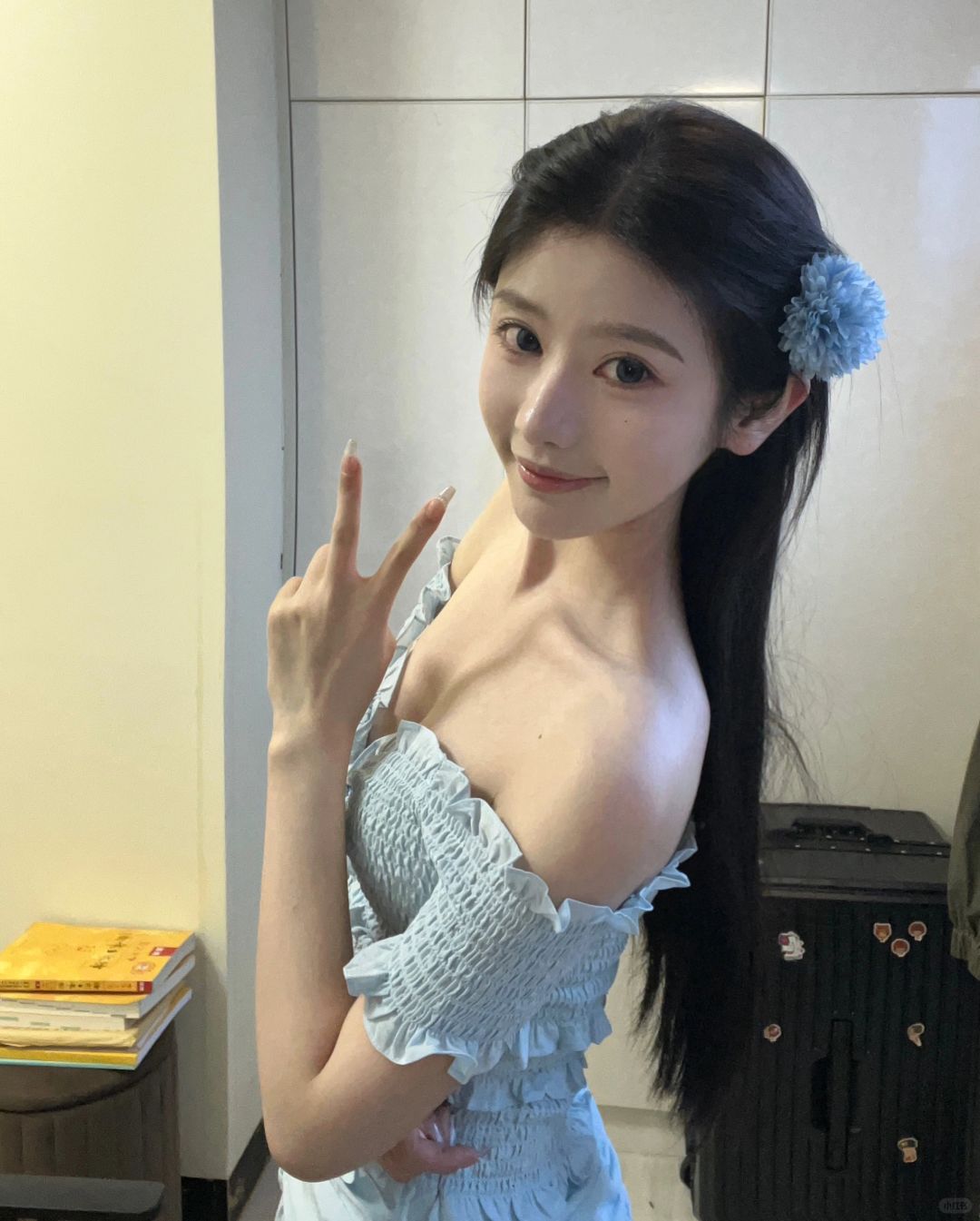最近的成都已经开始感受到春天的柔软了~好喜欢新裙子 是梦幻的蓝色 温油又显白~