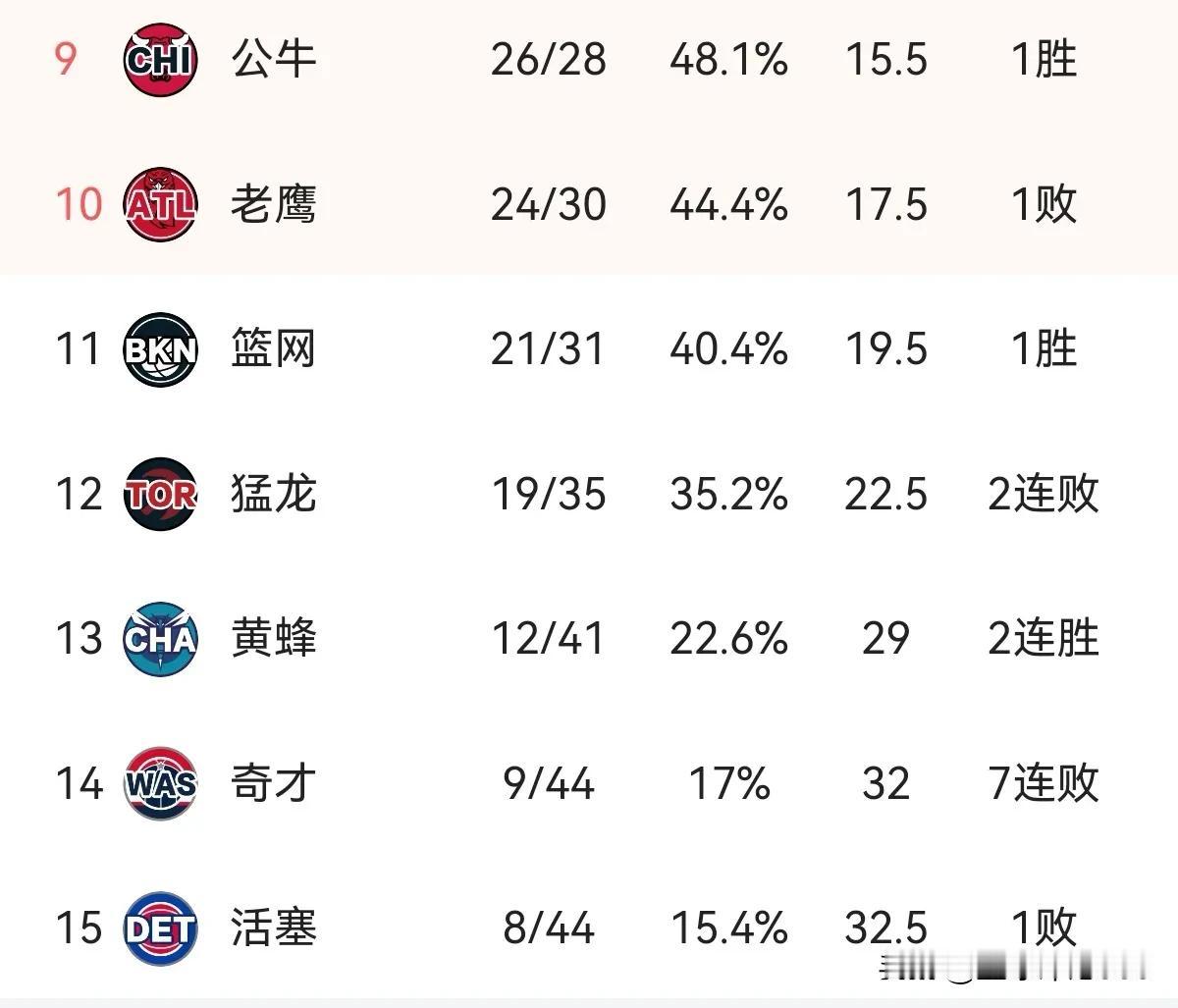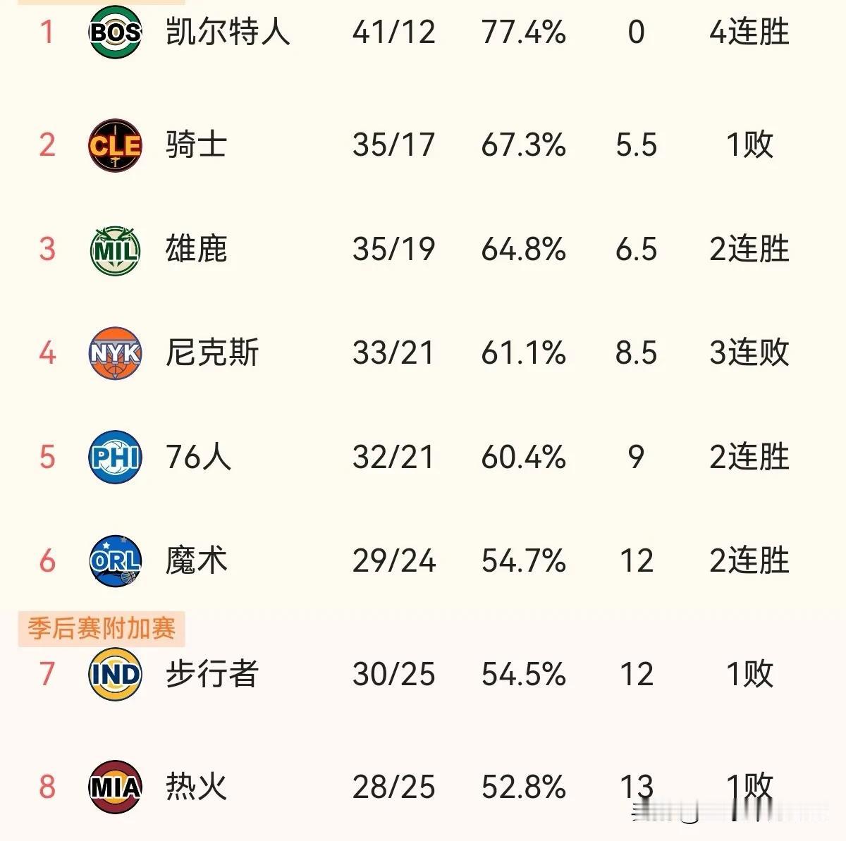 1.凯尔特人:傲视全联盟,一马当先,独孤求败; 2.骑士:傲慢自大负76人,未能实现10连胜; 3.雄鹿:击败卫冕冠军,摘掉伪强队的帽子; 4.尼克斯:断翅难飞,期待兰德尔的回归; 5.76人:难得一胜再胜,不过依然不被看好; 6.魔术:双状元的兄弟篮球,说不定能进季后赛; 7.步行者:两个巨星尚未融合,重组何时成功? 8.热火:战绩一直不高,但却始终令人惧怕,因为他最可能黑八; 9.公牛:有底蕴有球星,但却始终徘徊在附加赛边缘; 10.老鹰:努力培养鹰王特雷杨,可是感觉就是不如东契奇; 11.篮网:没有三巨头,成了可有可无的存在; 12.猛龙:送走西亚卡姆后,已经变成“猛虫”了; 13.黄蜂:干掉灰熊和步行者,谁过年不吃顿饺子; 14.奇才:库兹马和普尔,就是两个扶不起来的主; 15.活塞:啥也不说,主打一个心态,本赛季目标就是胜场10+