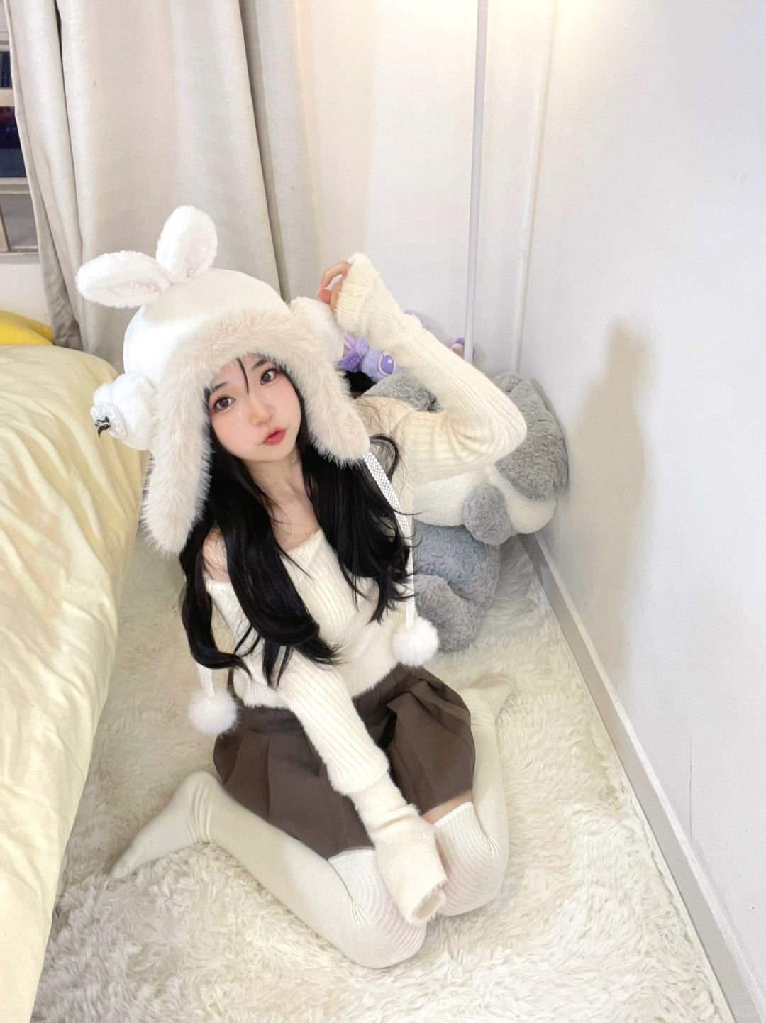 白色系好有初恋感!白毛衣➕小白袜➕毛绒帽子拿捏住我啦!