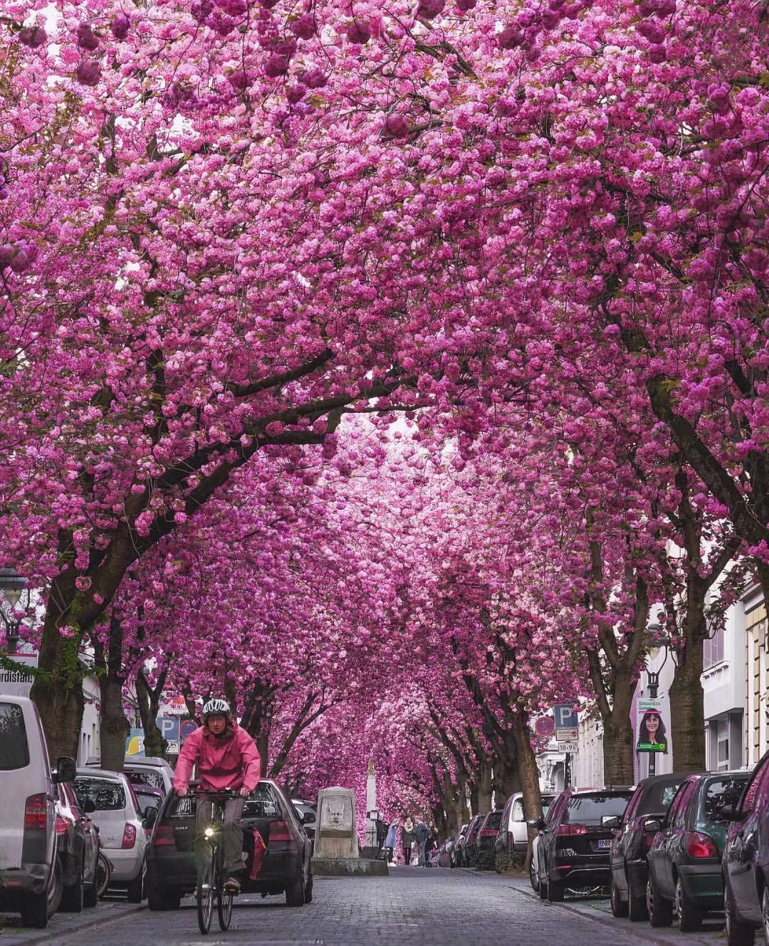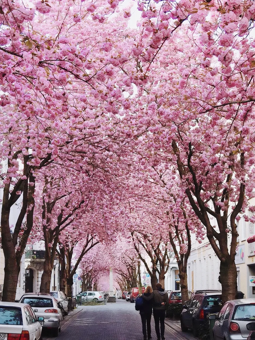 马上就要迎来赏樱的绝佳时节,欧洲也有不少城市拥有超美的赏樱地,今天给大家种草的这个樱花大道就位于德国!\n\t\n🌸波恩樱花大道:Heerstraße, Bonn\n\t\n📖关于波恩:\n这座城市位于德国西部,以著名作曲家贝多芬的出生地而闻名,1980 年代,Heerstrasse 沿线就种植了日本樱花树,每年春天,这里都是非常著名的赏樱胜地\n\t\n📅波恩的樱花什么时候开?\n最佳时间完全取决于天气,因此不能完全准确预测,不过通常会在 4 月的中旬达到顶峰,可以经常上ins关注实时动态\n\t\n🚄关于交通:\n我是从科隆出发,坐火车很快就可以抵达波恩,下了火车后按照导航步行15分钟就到樱花大道啦\n市中心非常适合步行,Heerstrasse距离市中心的大部分主要旅游景点只有十五到二十分钟的步行路程\n\t\n🌸樱花大道打卡tips:\n🔹喜欢拍照的朋友们一定要备好相机和镜头,因为这里真的非常惊艳,女生则可以穿着漂亮的小裙子,不过记得加件外套,天气还是有些微凉\n\t\n🔹整个樱花大道说长不长,不过拍拍照、逛逛街道的商店喝杯咖啡,2个小时很快就过去了\n\t\n🔹白天和晚上都是来这里打卡的好时间,夜樱也别有一番美景\n\t\n🔹沿着这条路漫步,会发现这里有很多咖啡店,还有纪念品商店和精品店\n\t\n📷部分图via网络\n——\n我当时从科隆出发所以晚上还是回到了科隆,因此比较建议在这里一日游,那么就为大家种草一家很棒的科隆\n【❤️Airbnb】,方便大家出行~\n\t\n🏠民宿名:Mittendrin und direkt am Park — 110 m²\n\t\n🌟民宿亮点:\n▪️ 公寓位于科隆最受欢迎的社区之一,紧邻城市花园的\"比利时区\",坐落在公园中央,十分安静\n▪️ 公寓宽敞,天花板超高,家具具有现代化的时髦感,两扇大窗映衬着窗外绿植十分漂亮\n▪️ 生活设施很齐全,有两间卧室,可以住下4人,地理位置真的很不错\n\t\n