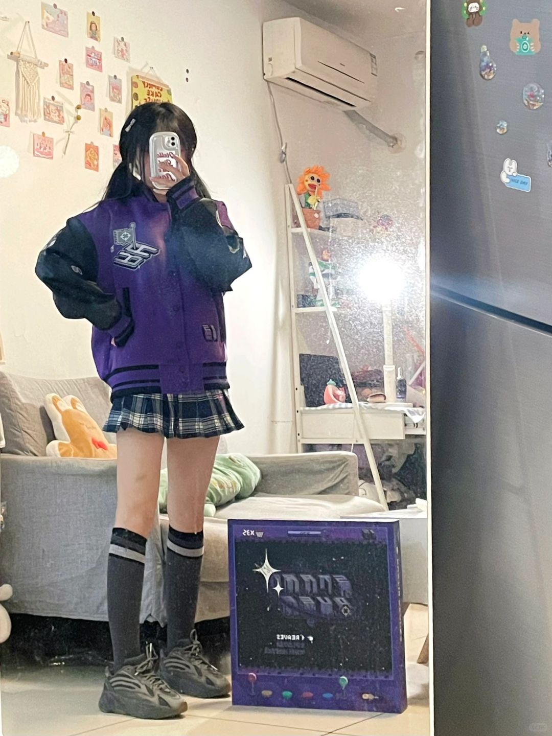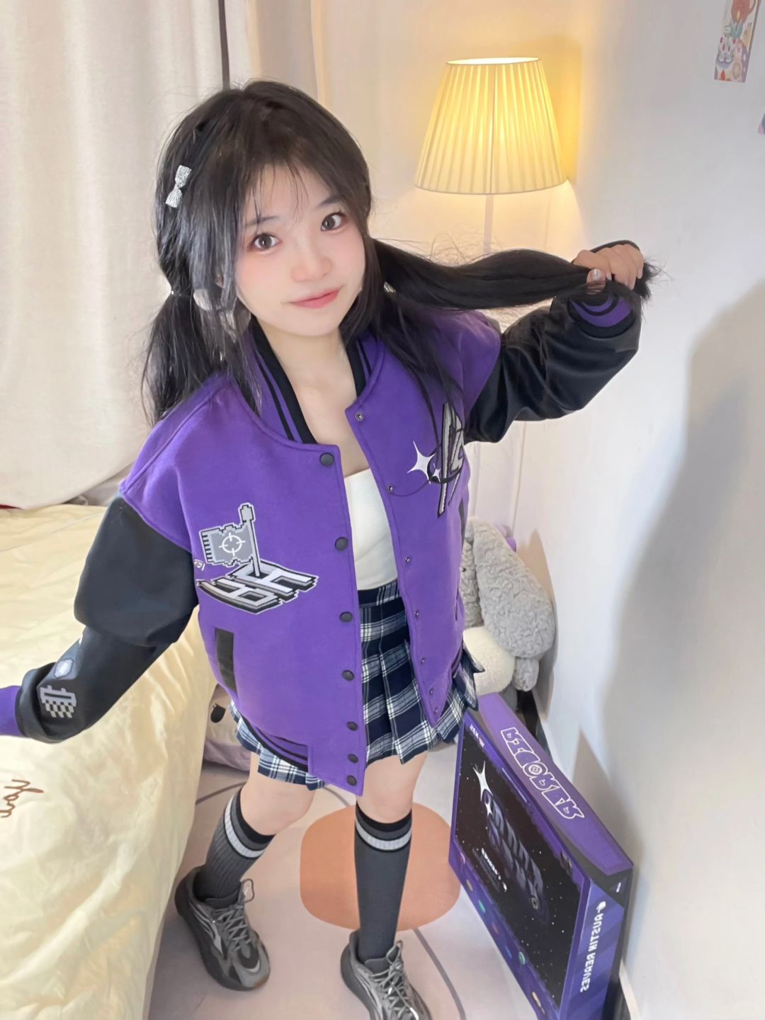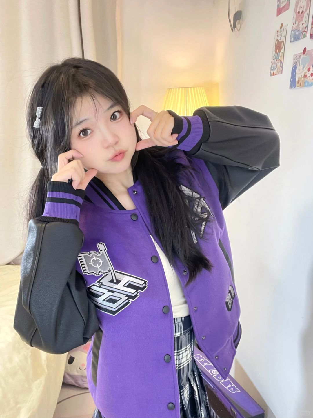 开学季甜酷女孩返校啦!绝绝紫棒球服➕百褶裙好减龄呀