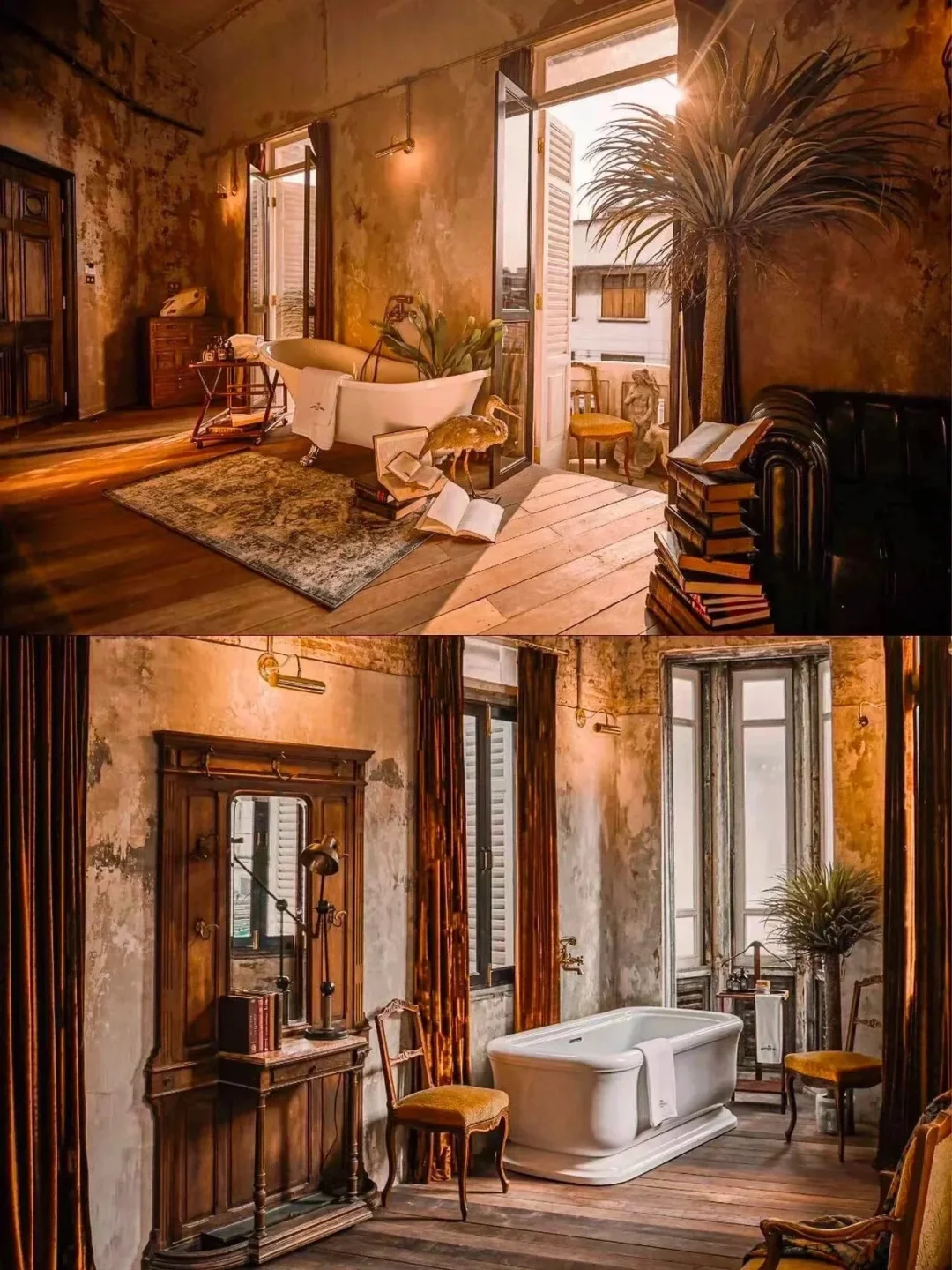 ▪️ 民宿的房间很多,每间都有精致的浴缸和木质床以及各种复古风桌椅