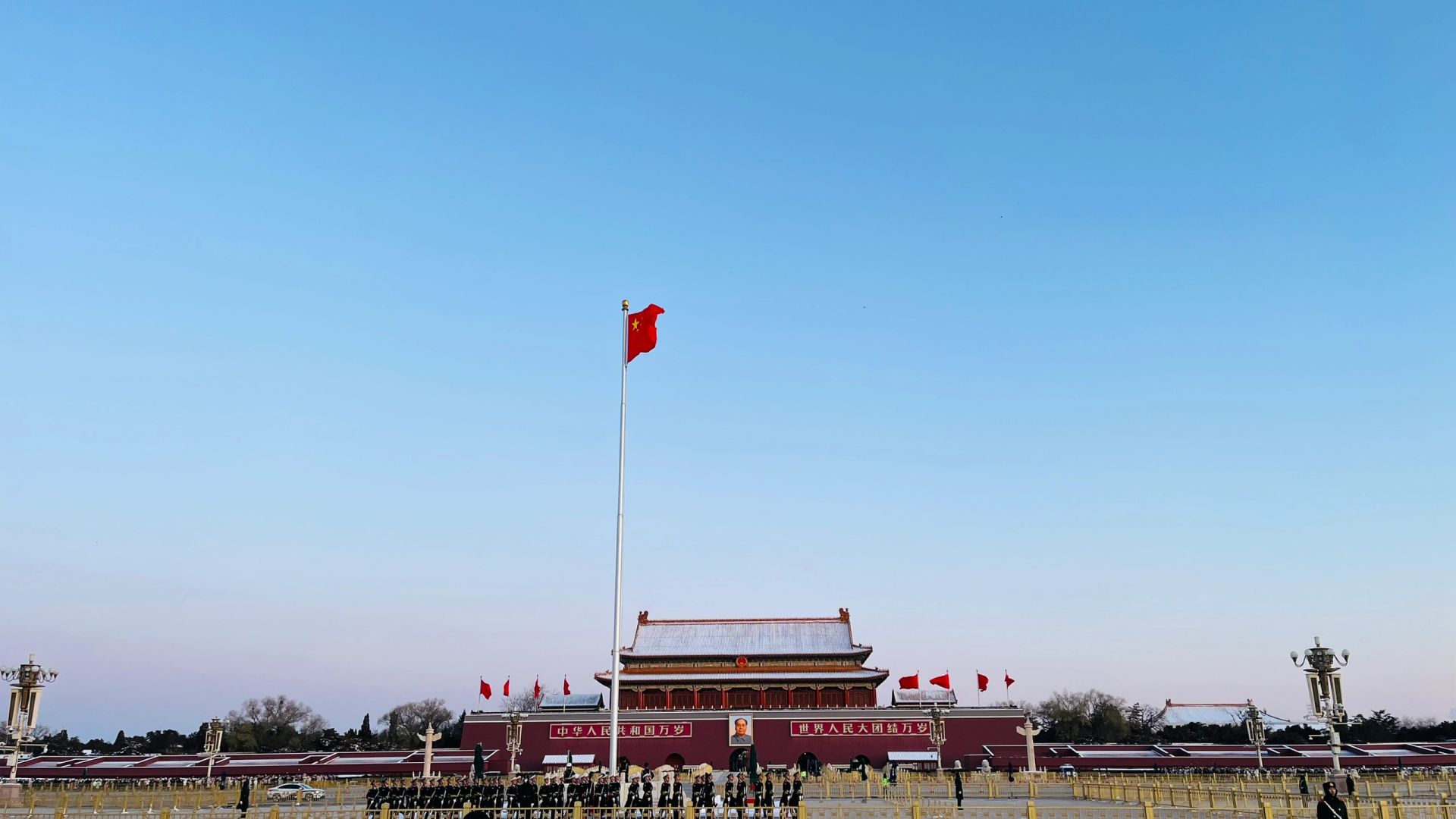 2、升旗时间一般在7点26分,如在南池子大街附近建议可以6点30分前出门,只要7点前能到达就可以(安检可能要排队)。