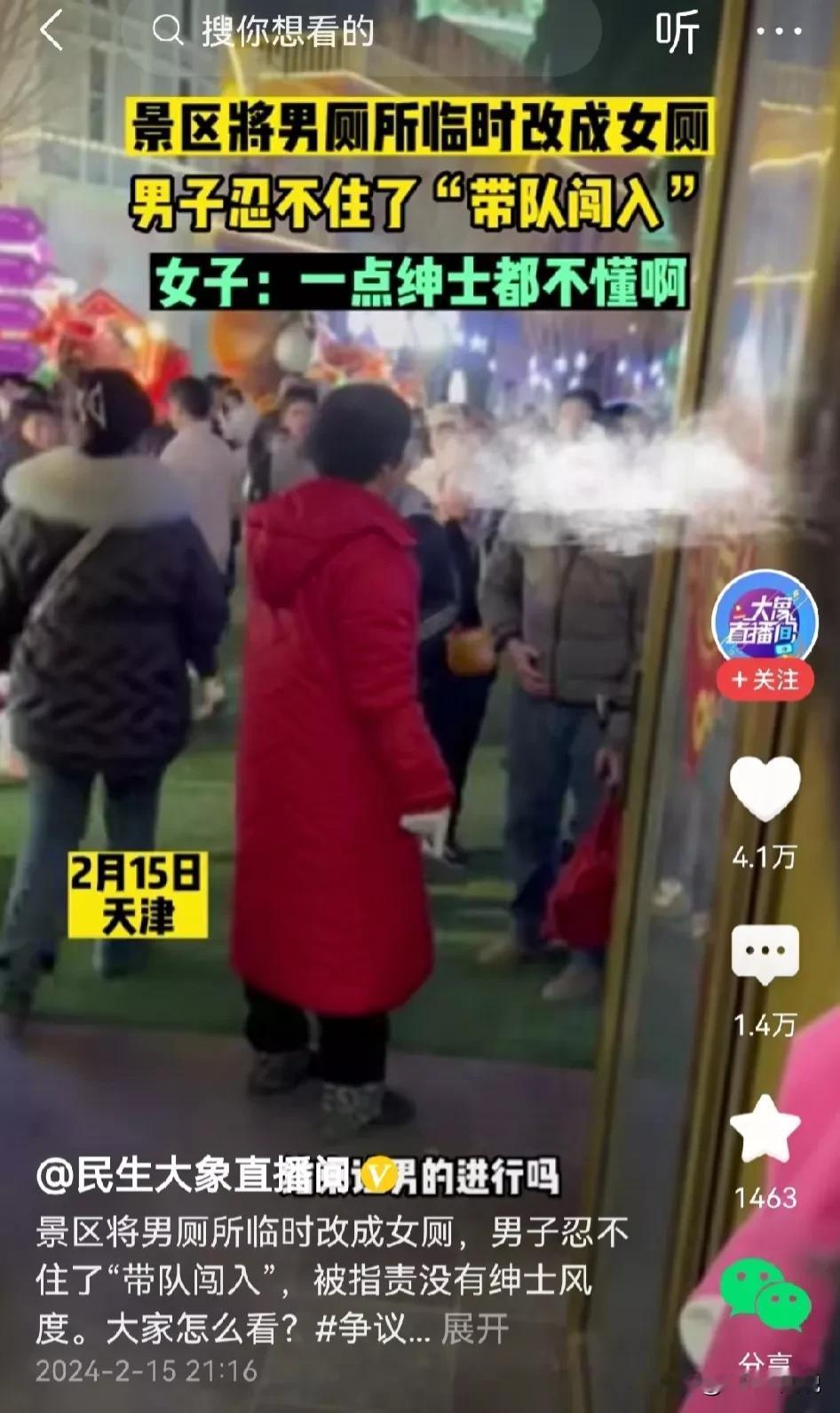 某女星拿“女上男厕”谈男女平等:你既然知道女性上厕所比男性上厕所时间长,那你在建厕所的时候,就应该女厕所大,男厕所小!网友反问:你知道为什么前苏联的女性从来不要求男女平等吗?因为前苏联真的让女人下煤矿.... 在视频中,该女星言之凿凿的表示:很多地方上厕所的时候,女厕所永远是排大队,而男厕所永远是空的。如果真要做到男女平等,就应该知道女性上厕所时间会比男性长,那你就应该建厕所的时候,就应该把女厕所建的比男厕所大!可是它没有,它是把男女厕所建的一样大的... 最后,由此得出的结论是:要想真的实现男女平等各顶半边天的时代,还是有点远的... 这逻辑朋友们觉得成立吗?就我个人而言,我觉得你说公共场所女性上厕所排队可以通过调整男女厕所的比例我能理解,但是非要硬扣男女平等这么一大帽子,是不是就有点牵强了?按你说的男女平等,那现在建一样大不正式平等的体现吗?