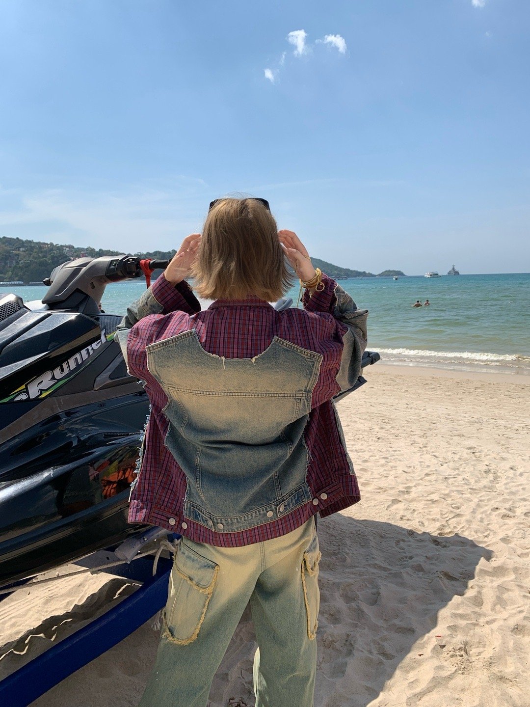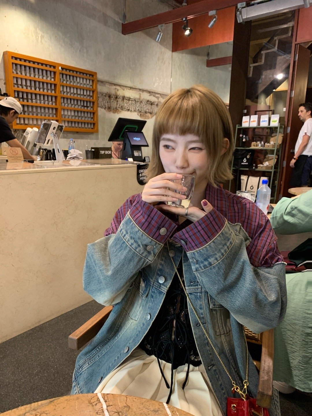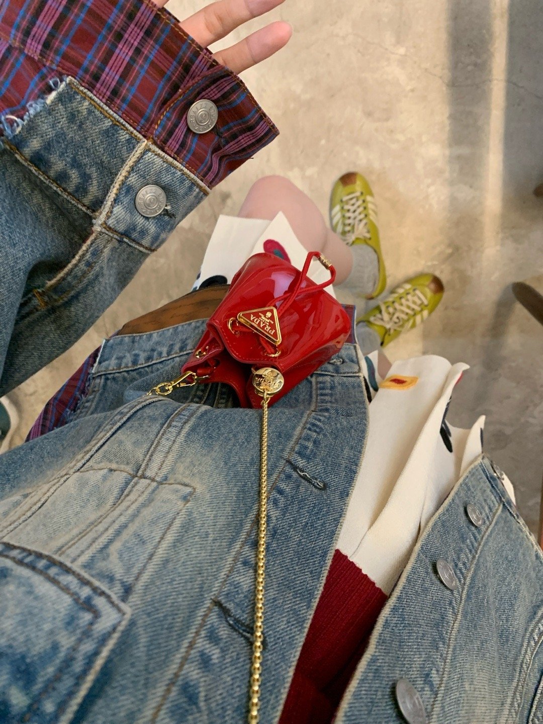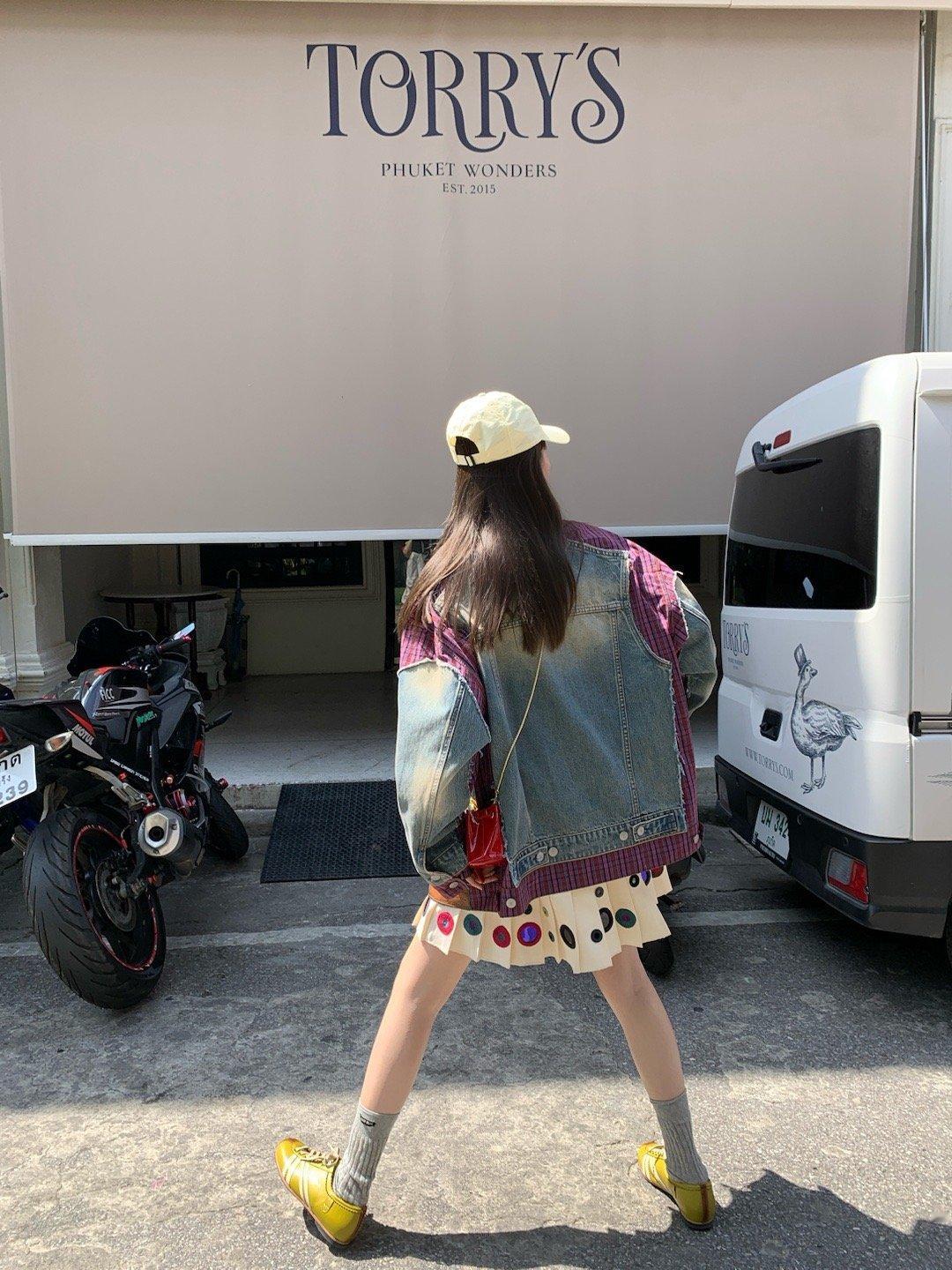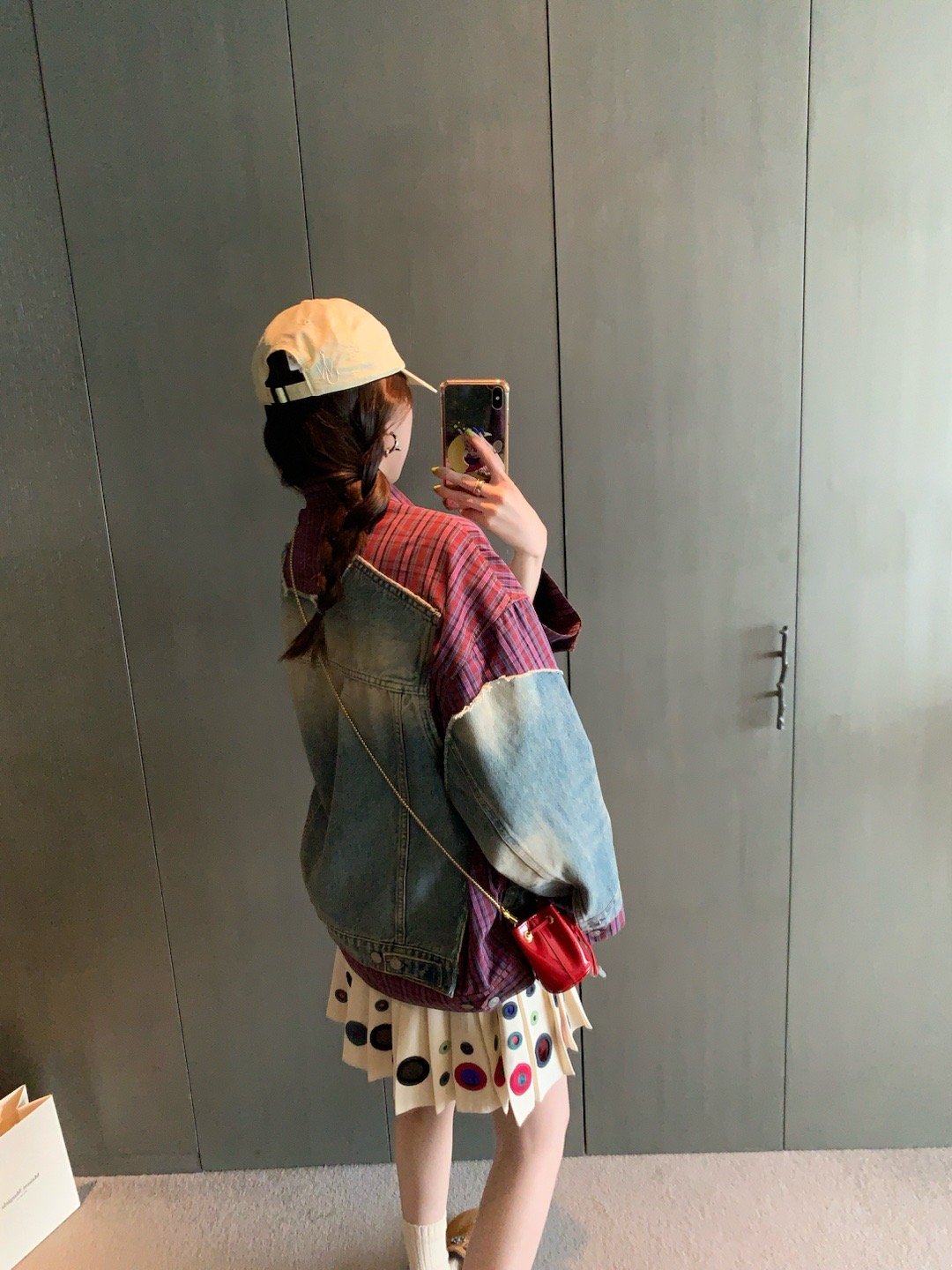 紫色格子衬衫部份是定制的 特别显白 有种清冷感 比普通牛仔衣更时髦特别 穿起来就很有自己风格的那种! 滑5张50无门槛噜