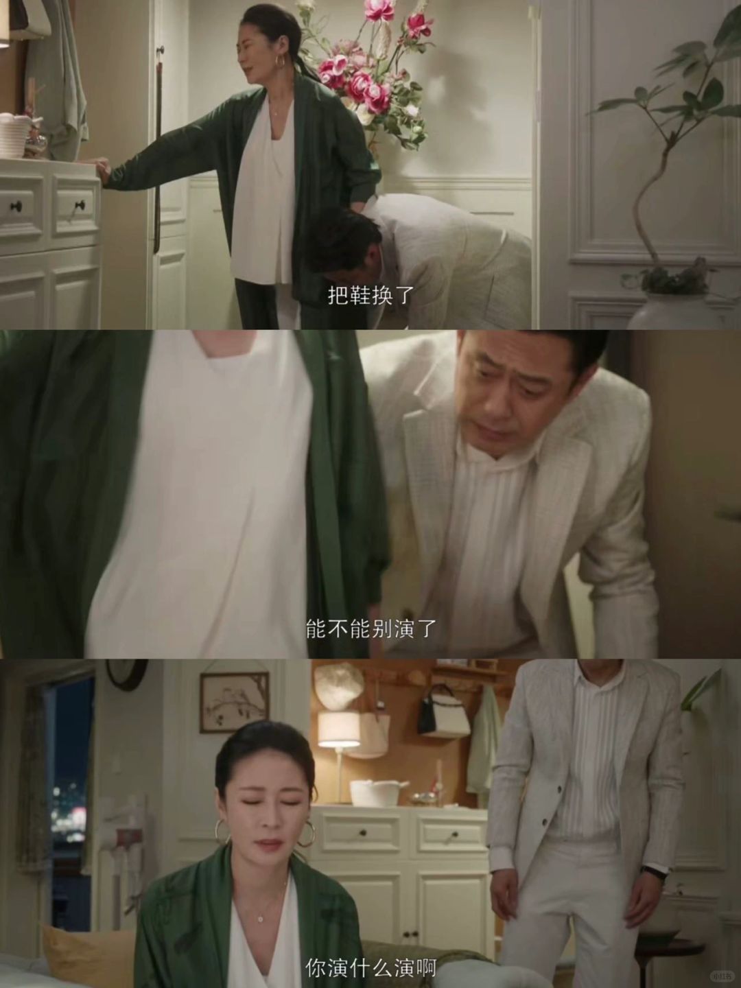 陶大磊一天天不干正事,自己不赚钱,还用老婆的钱吃喝玩乐。老婆孩子他可是一点都看不见啊,在外面沾花惹草。在孟菀青的同学聚会上不请自来还阴阳怪气,他本身就不行,却给自己营造了一个好丈夫的形象,真的是离谱。回家了,陶大磊给孟菀青下跪道歉,就没见过这么又装又不靠谱的人!