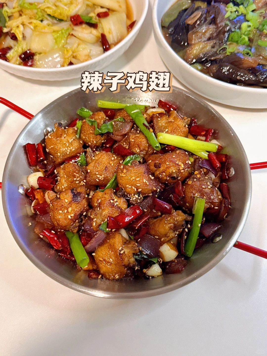🎊鸡翅都给我这样做!太好吃啦!麻辣开胃又下饭!白菜带有蔬菜的清甜,酸辣做法太好吃啦~ 🌈今日菜单: 1️⃣辣子鸡翅 2️⃣酸辣白菜 3️⃣油豆烧茄子