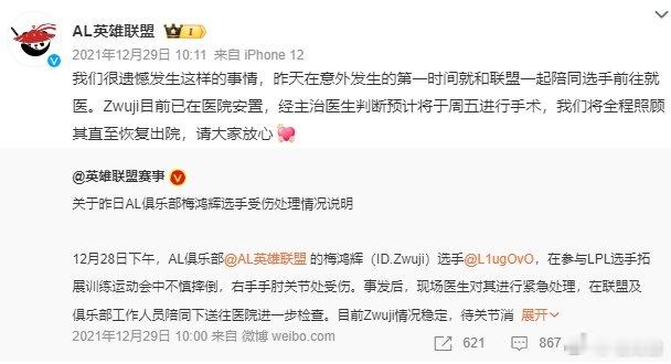 2021年休赛期LPL组织了一场选手运动会,RW战队的下路选手Zwuji因为在运动会中摔伤手肘,被送去医院进行了手术。