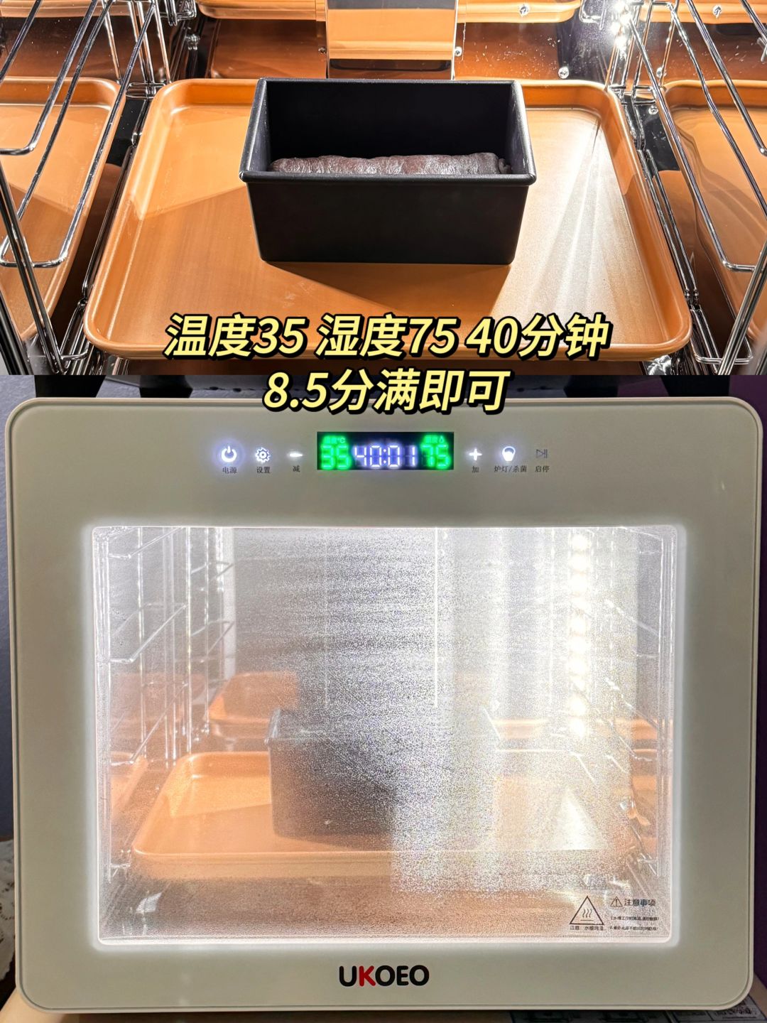 5️⃣放入吐司盒,发酵箱温度35 湿度75至8.5分满(40分钟左右)