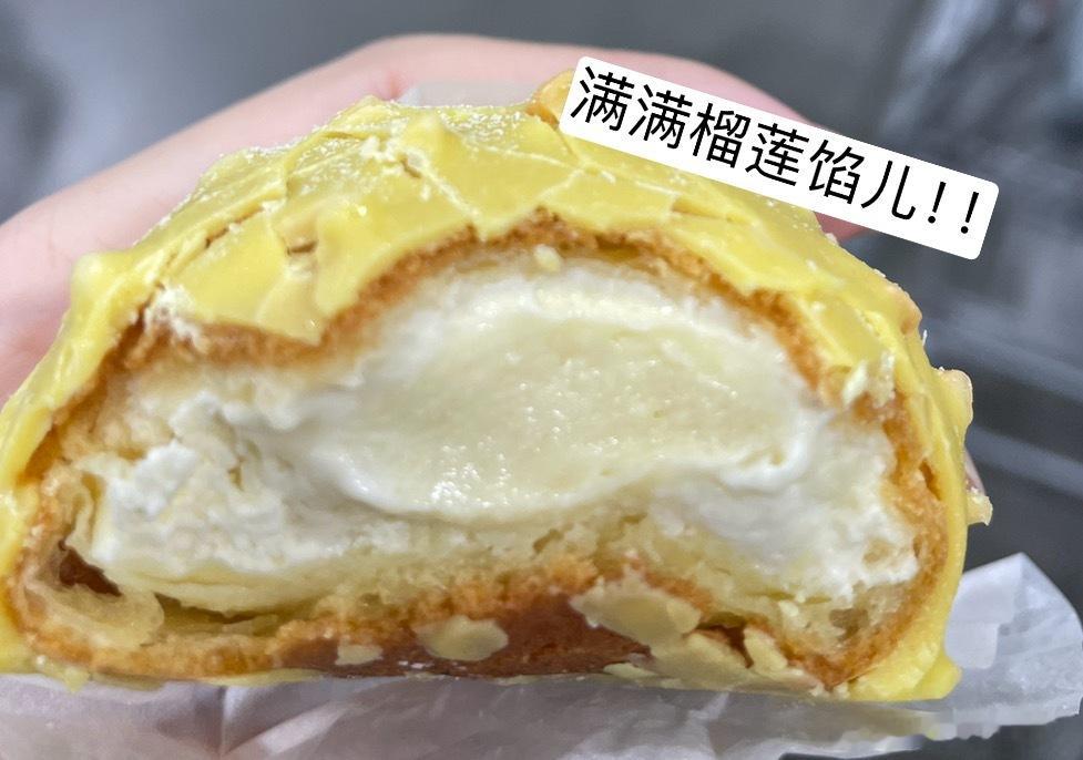 介个泡芙里面好多榴莲,整体有点太甜了,对于我来说放冷冻里面可以吃三个月[笑cry]我吃东西慢~上次买的芝士蛋糕还在冰箱~(但是都很爱吃)