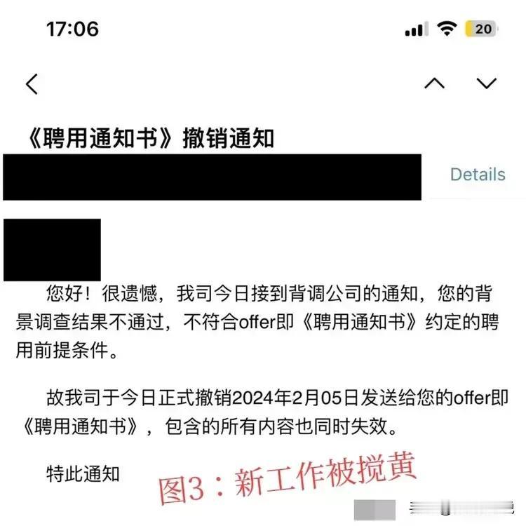 年薪100w+的公司元老遭公司辞退,赔偿却按只按基本月薪底薪1w给n的赔偿。为此与前任公司仲裁,不想背调又被刺,搞黄了自己国企offer。遇到背调背刺怎么办?无良HR给你支两招。 帖主作为年薪100w+(图1)的公司元老遭公司辞退,当天上午通知,下午就要求收拾东西走人。在谈及赔偿标准时,老板只同意按照月薪底薪1w元进行赔偿。在帖主明确拒绝后,被公司的HR威胁到:如果走仲裁,就让帖主在北京混不下去...(图2) 在此过程中,帖主本已得到一家国企offer,也被前任公司搞黄了(图3)。无奈帖主极力解释和前公司只是存在一些纠纷,奈何还是无力回天,自己的入职流程被终止(图4)。 被调时被说坏话,的确让人头大。可偏偏很多无良公司会利用这一卑劣手段来威胁那些和公司发生不愉快的员工。那么作为劳动者该如何应对呢?作为一个多年底层板砖的HR,建议分情形应对: 如果公司背调不是特别正式,那你就提前做好“准备工作”。然后和自己所留的证明人做好相关的信息同步,然后再背调的时候做沟通; 如果是特别正式的背调,比如动用了专业的第三方公司,可以要求无论背调的结果是什么,都要把背调结果正式报告发给自己。这样如果有人有人故意诽谤,咱们也可以考虑依法提起诉讼并要求赔偿。