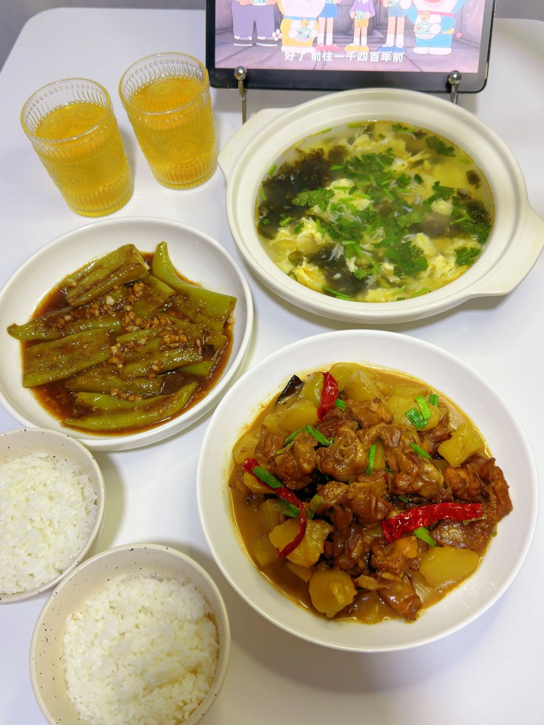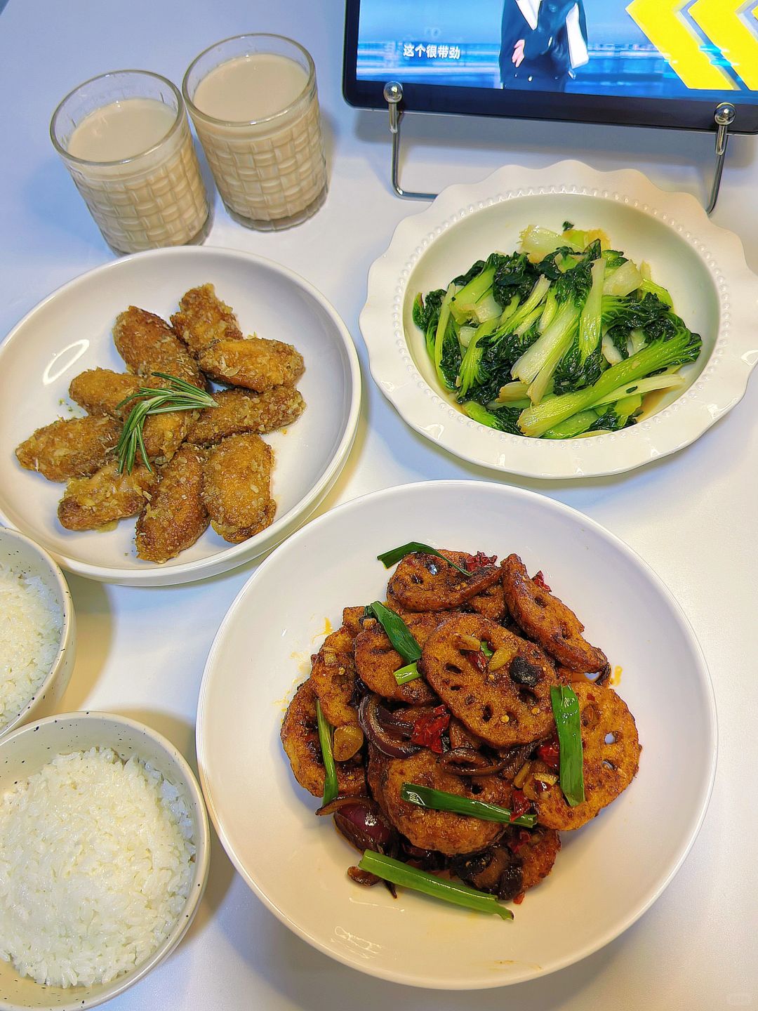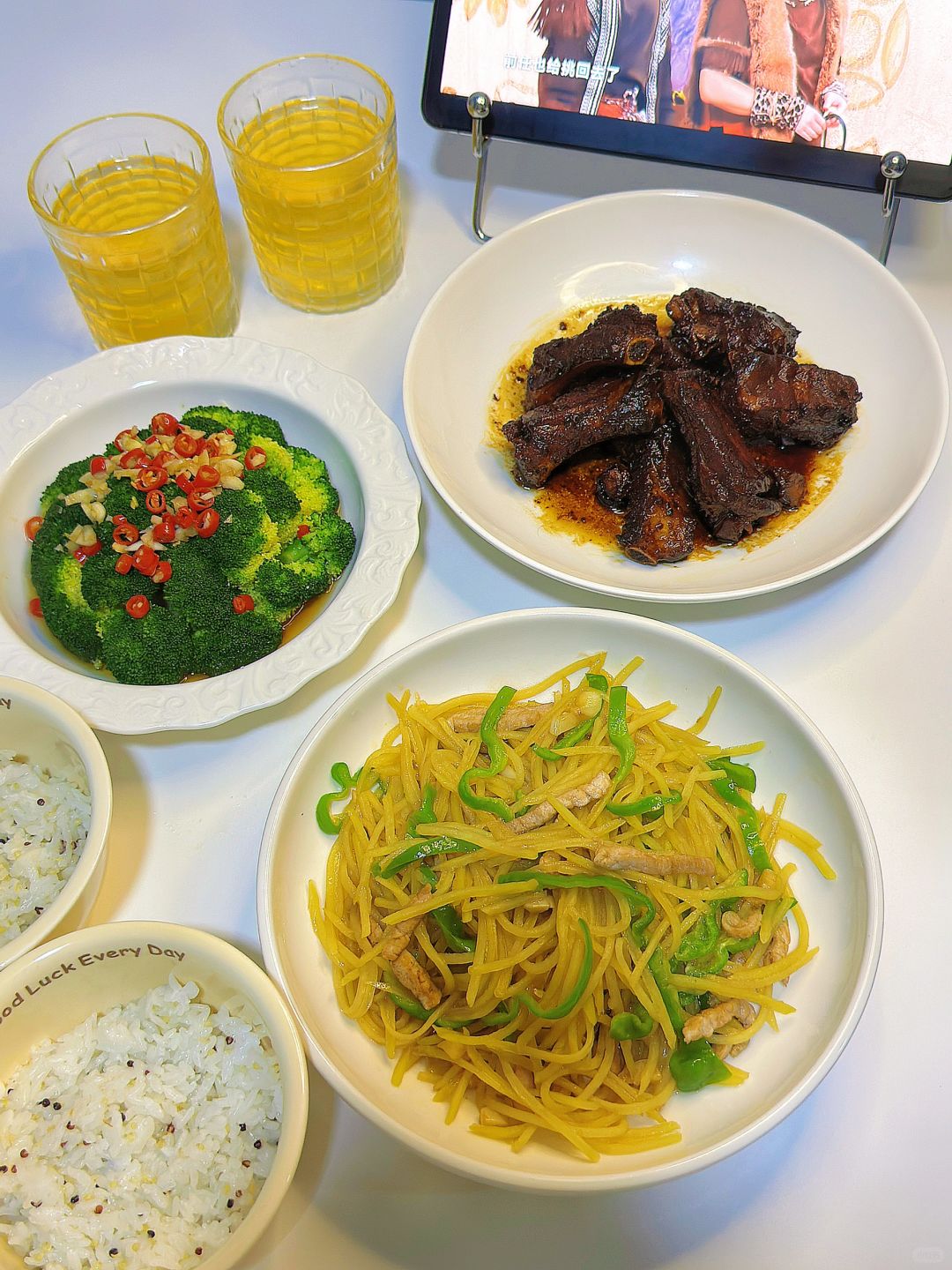 给大家整理了一周晚饭合集✨ 每道菜都有详细的教程🥘 希望能给大家带来做饭的灵感✨ 大家可以翻之前的笔记🎉 好好吃饭哟~💕💕 1️⃣辣子鸡丁➕溜肉段➕油焖尖椒 2️⃣ 红烧鸡翅➕西芹炒虾仁➕萝卜丝煎蛋汤 3️⃣辣子鸡翅➕酸辣白菜➕油豆烧茄子 4️⃣红烧鸡块➕油焖尖椒➕紫菜蛋花汤 5️⃣叉烧鸡腿➕西芹炒腊肠➕蒜蓉粉丝娃娃菜 6️⃣ 话梅排骨➕青椒土豆丝➕白灼西兰花 7️⃣蒜香黄油鸡翅➕干锅藕片➕蒜蓉菊花菜