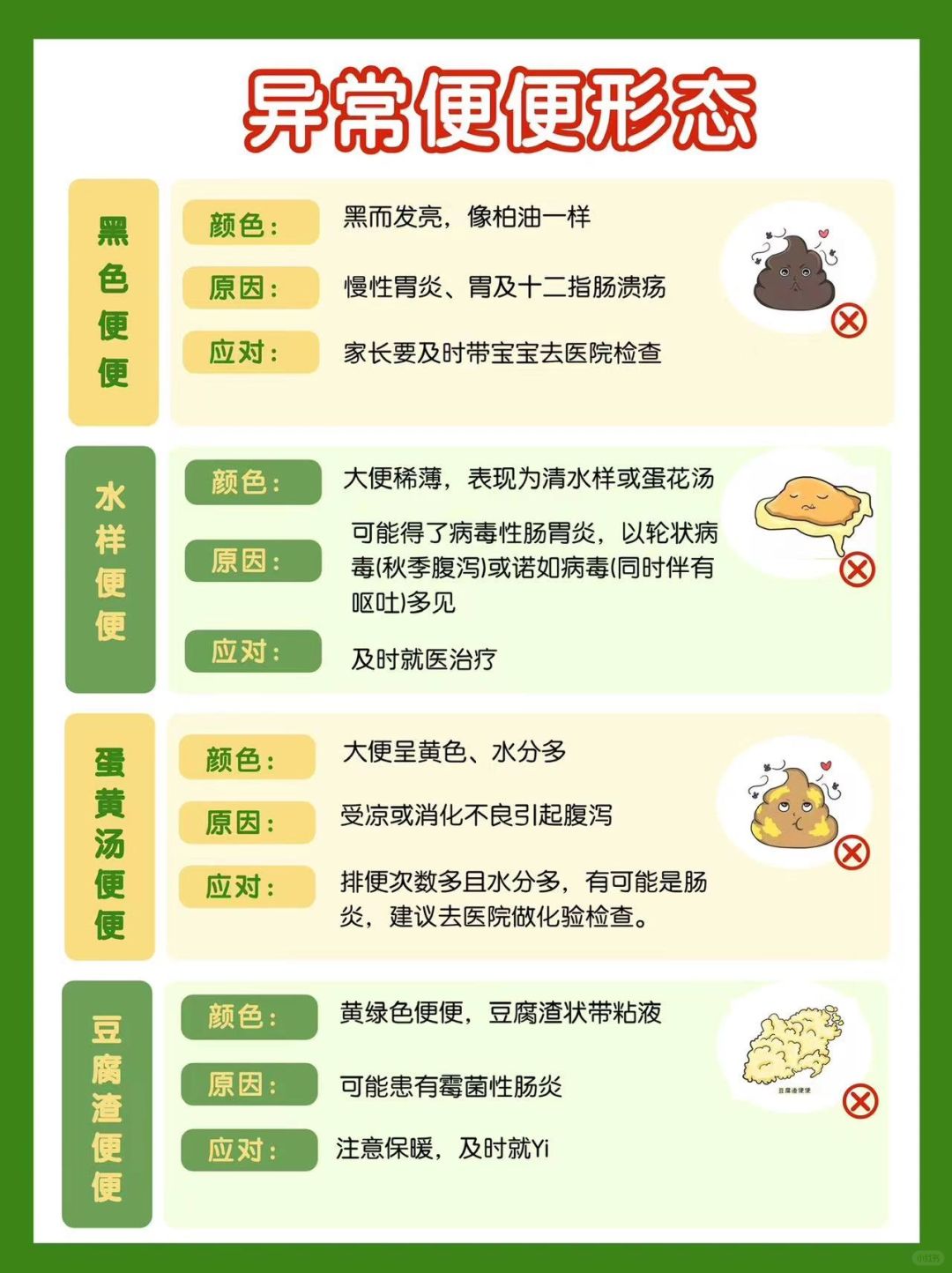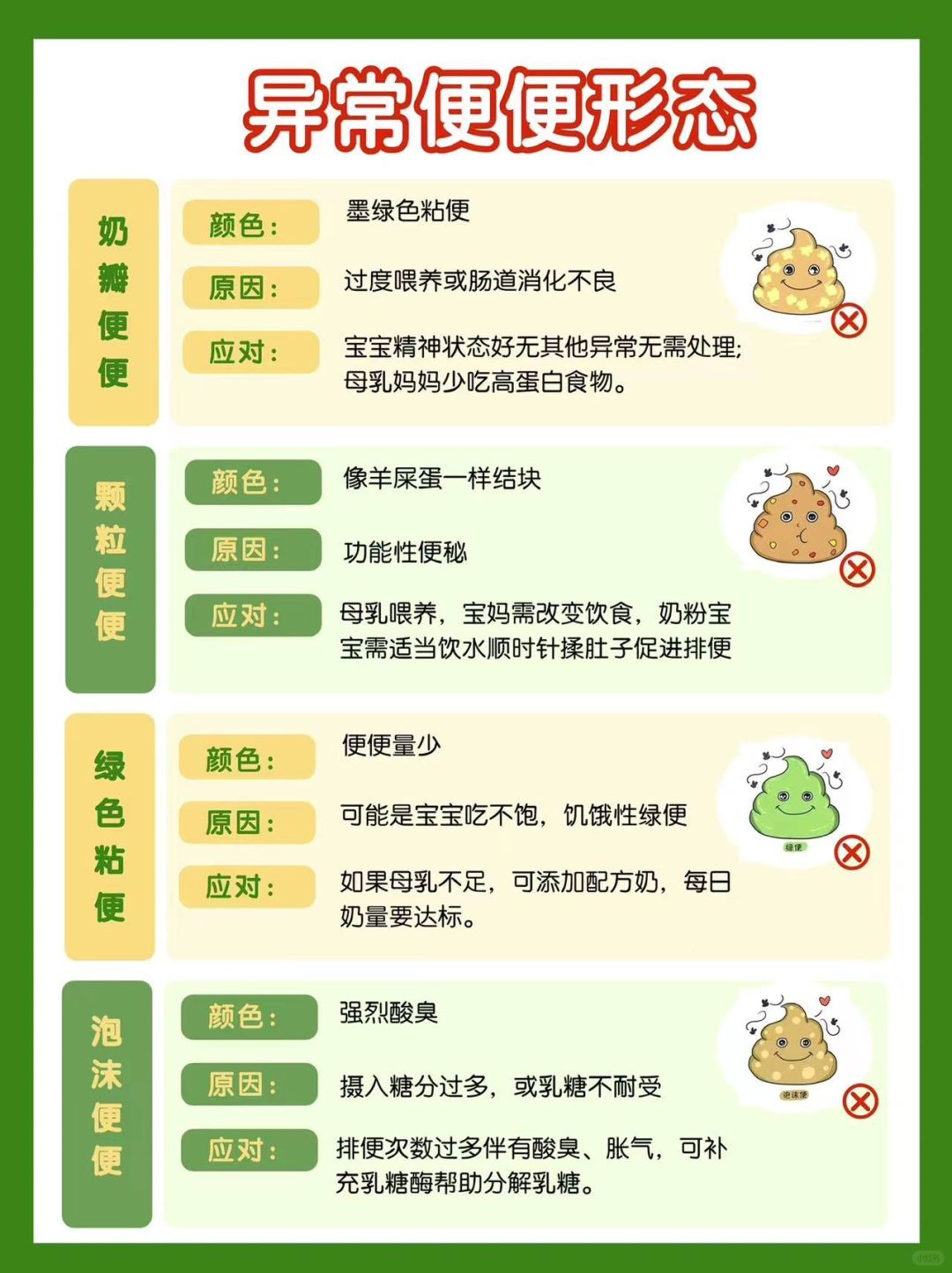 相信各位新手爸妈对宝宝的臭臭还不是很了解, 今天五张图告诉你们!!以便以后再遇到。不 正常就能轻松应对啦