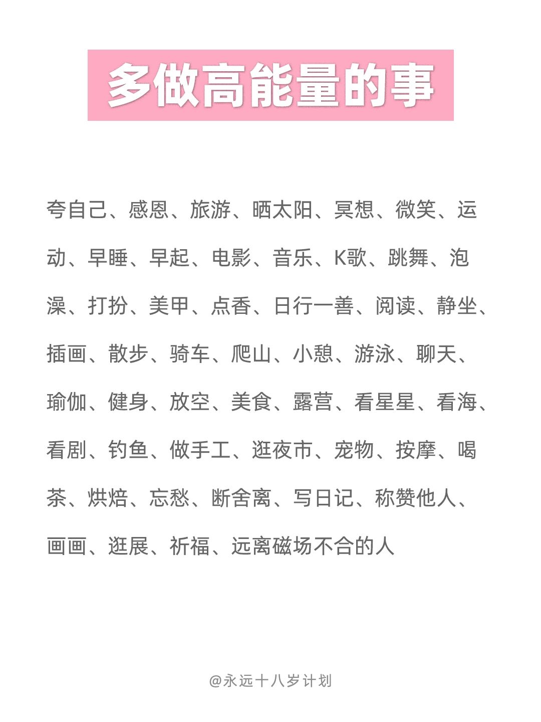 高能量状态里的人,会表现出更多的从容自信,积极向上的态度,也能够吸引到好的人际关系,好的身心状态,也会给周围的人带来身心愉悦的感觉~ 越高能量越幸运,让我们一起做高能量的人吧🔆