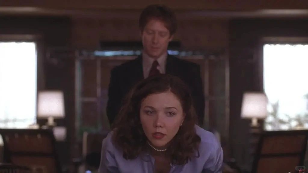玛吉·吉伦哈尔饰演的有着精神病史的女孩李,出院后学会了打字,于是去律所应聘秘书,遇到了詹姆斯·斯派德饰演的律师爱德华,不得不说,有那么一点一见钟情的感觉——针尖对麦芒。