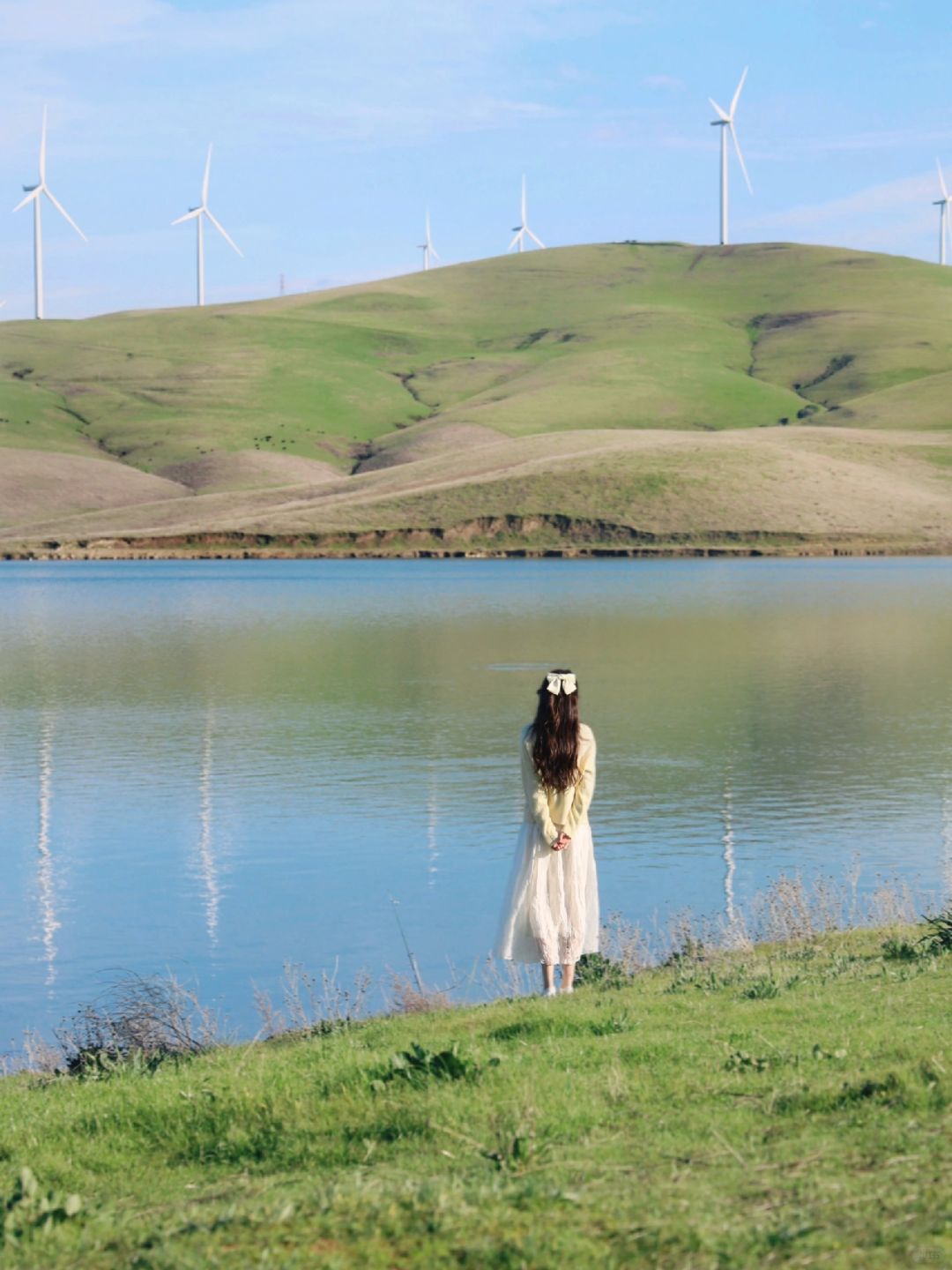 湾区周边居然有这么好看的地方! 算是众多“小瑞士”里最独特的一个[萌萌哒R] 🤍🤍🤍 📍Los Vaqueros Watershed & Marina 水超级清澈,湖边有好多人在钓鱼 湖边的山层层叠叠特别有线条感 (超喜欢图5那个山的曲线!) 远处还有成片的大风车 脑子里自动响起了周杰伦的bgm “白色的风车,安静的转着~” 湖边有很长的trail可以走 不过我们只在停车场附近转了转已经很好看了 这里没有遮挡 到了夏天会比较晒 要趁着春天来哦[萌萌哒R]